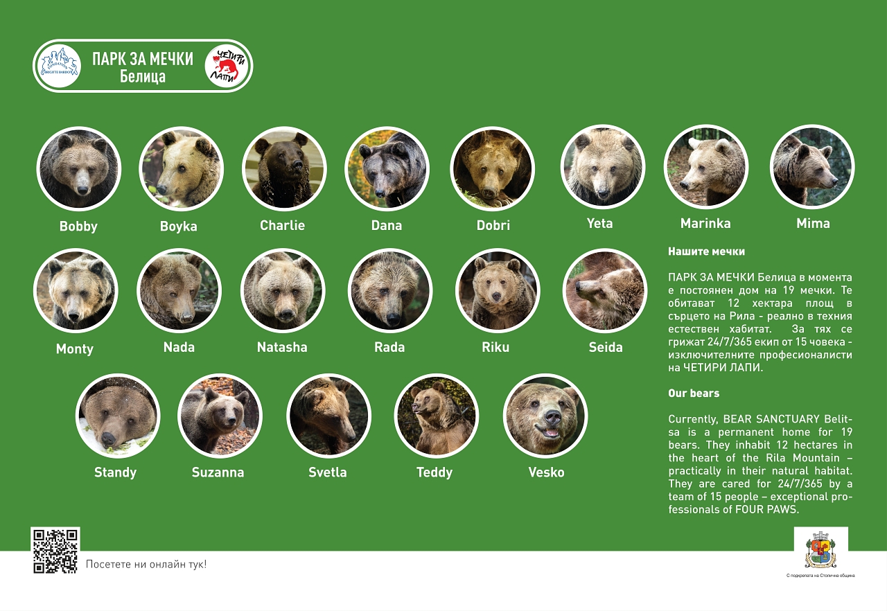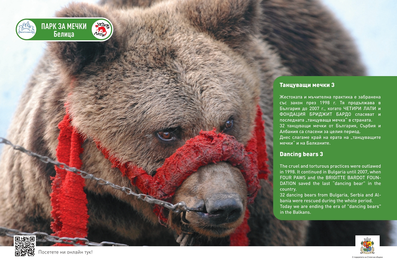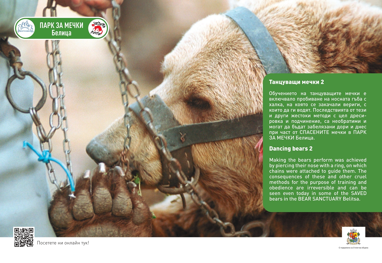 От 21 април в Галерия на открито на Моста на влюбените ще бъде представена изложбата "Спасените: 20 години история", разказваща за Парка за танцуващи мечки в Белица.