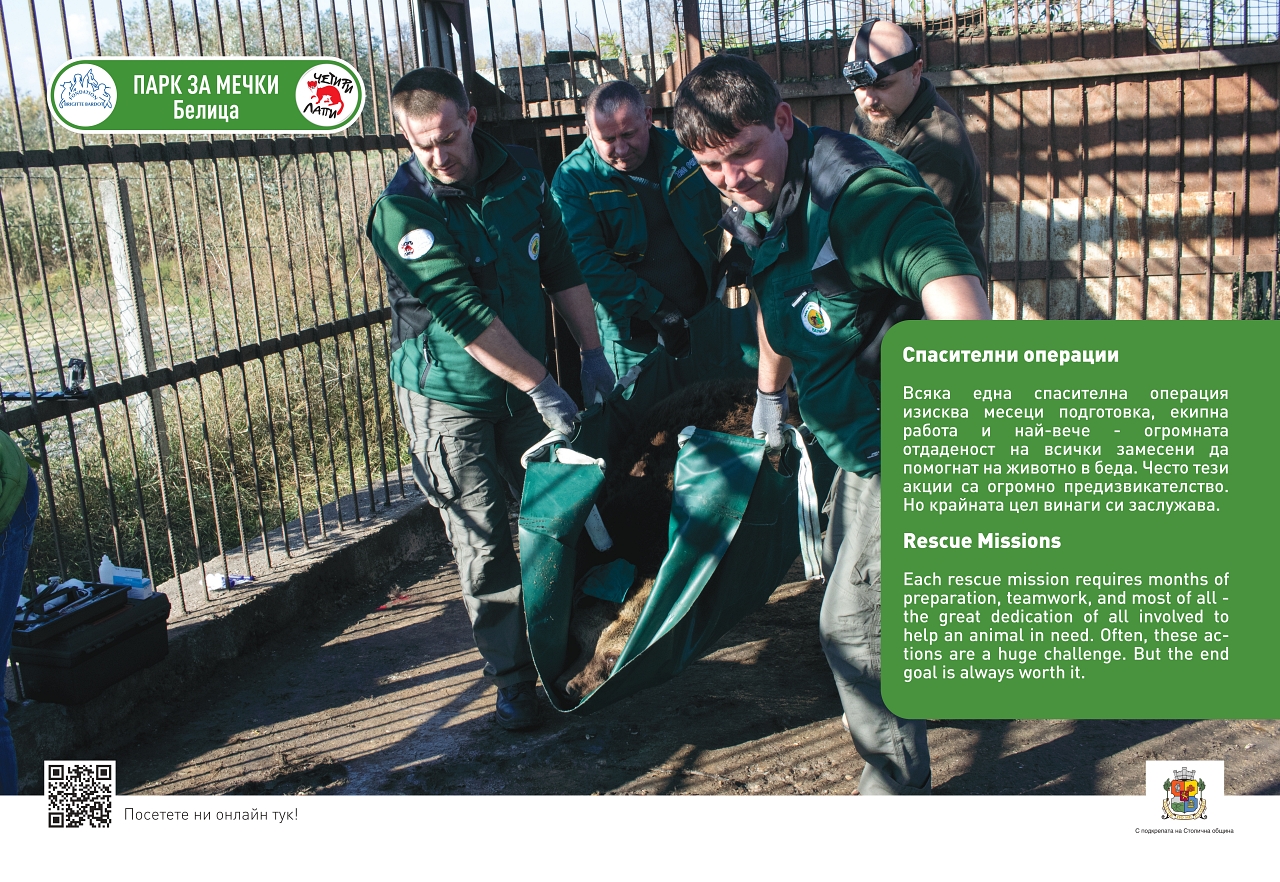 В 60 табла с фотоси изложбата "Спасените: 20 години история" ще разходи жителите и гостите на столицата из изпълнения с драматизъм, но и със спасение и оптимизъм, живот на мечките от ПАРК ЗА МЕЧКИ в Белица. Експозицията съдържа снимки от създаването на парка, които разказват историите на мечките, намерили свое спасение в него, както и някои от тъжните лица на последните танцуващи мечки. Посетителите на изложбата в сърцето на София ще могат да научат и полезни факти за вида "кафява мечка" и естествената ѝ среда на живот в България.