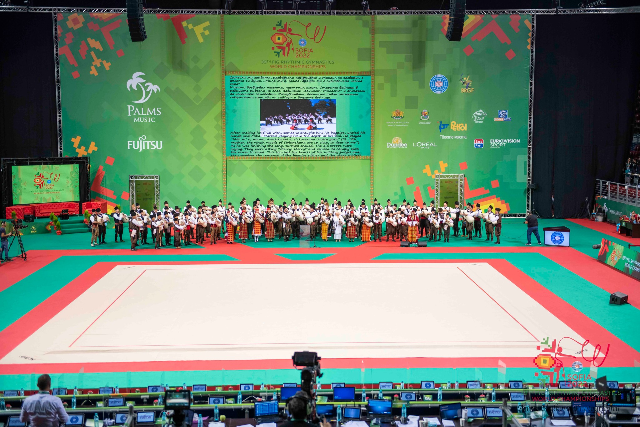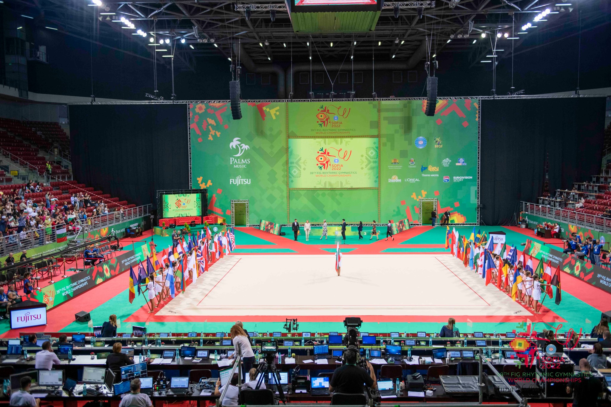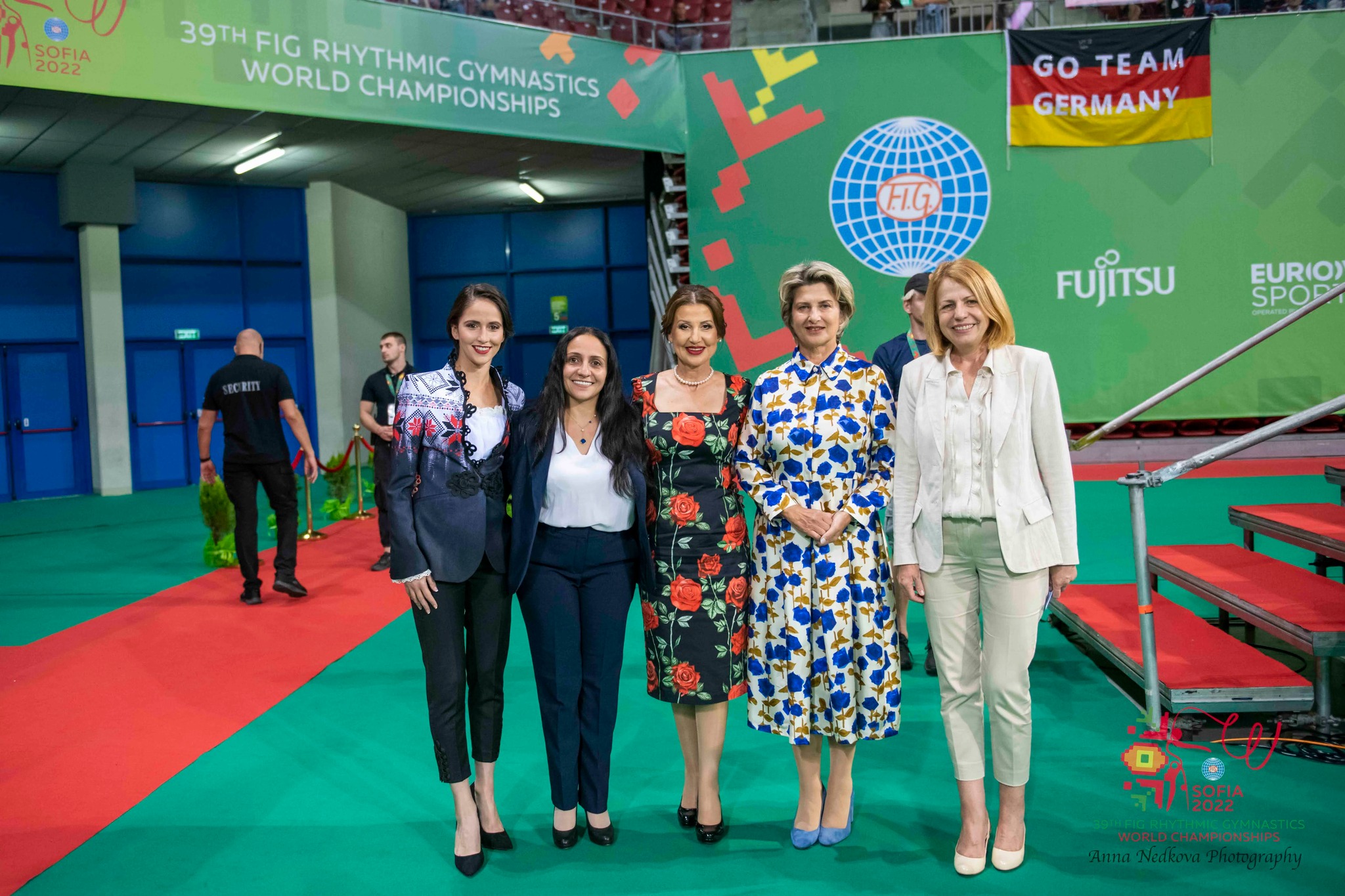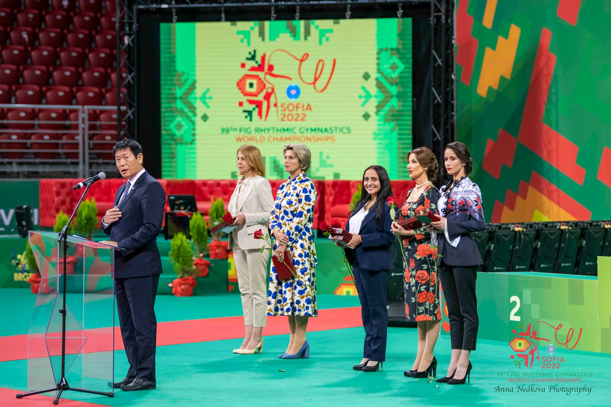 Кметът на София Йорданка Фандъкова, президентът на Международната федерация по гимнастика Моринари Ватанабе, министърът на спорта Весела Лечева, президентът на Техническия комитет по художествена гимнастика към ФИГ Ноха Абу Шабана, президентът на БФХГ Илиана Раева и посланикът на Световното първенство Невяна Владинова откриха Световно първенство по художествена гимнастика в "Арена Армеец" в София.