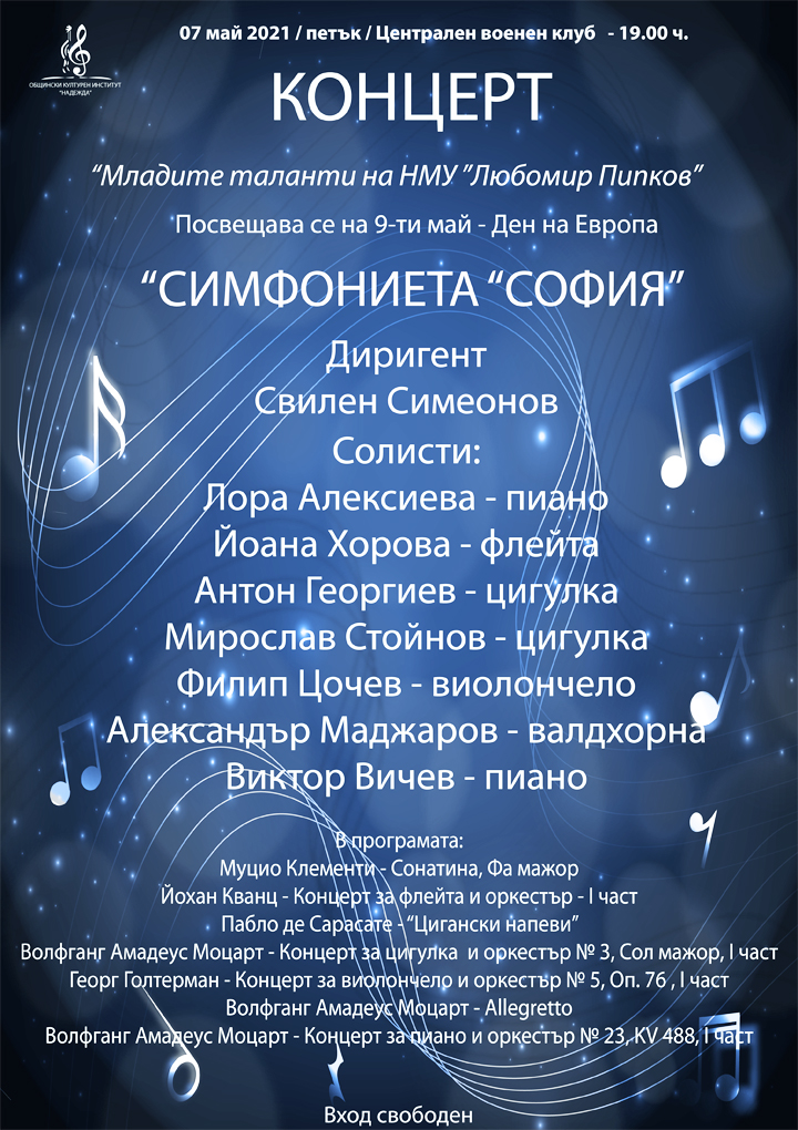 Концерт "Младите таланти на НМУ "Любомир Пипков" Посвещава се на 9 май – Деня на Европа – "Симфониета "София"