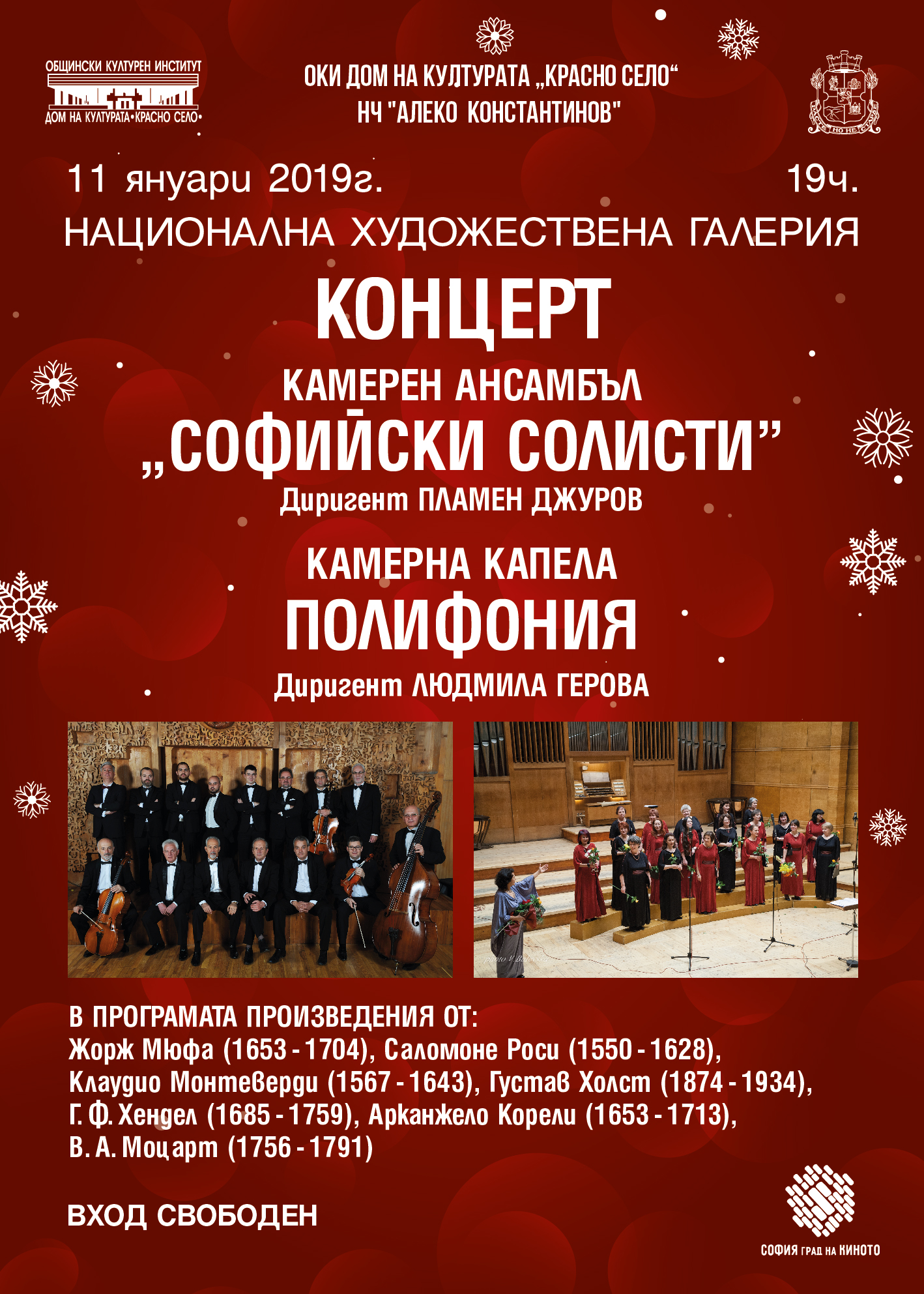 Концерт на Камерен ансамбъл "Софийски солисти" и Камерна капела "Полифония"