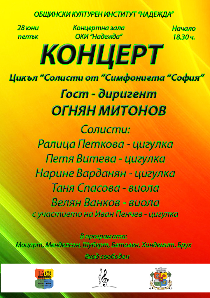 28 юни (петък), Концертна зала ОКИ „Надежда“ – 18:30 часа