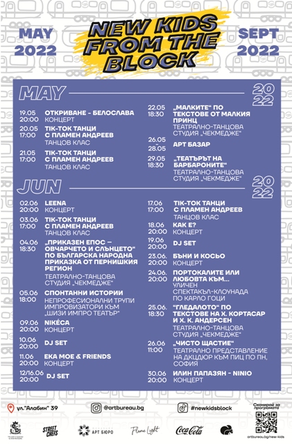 Програмата за май и юни е публикувана на: https://artbureau.bg/new-kids/.
