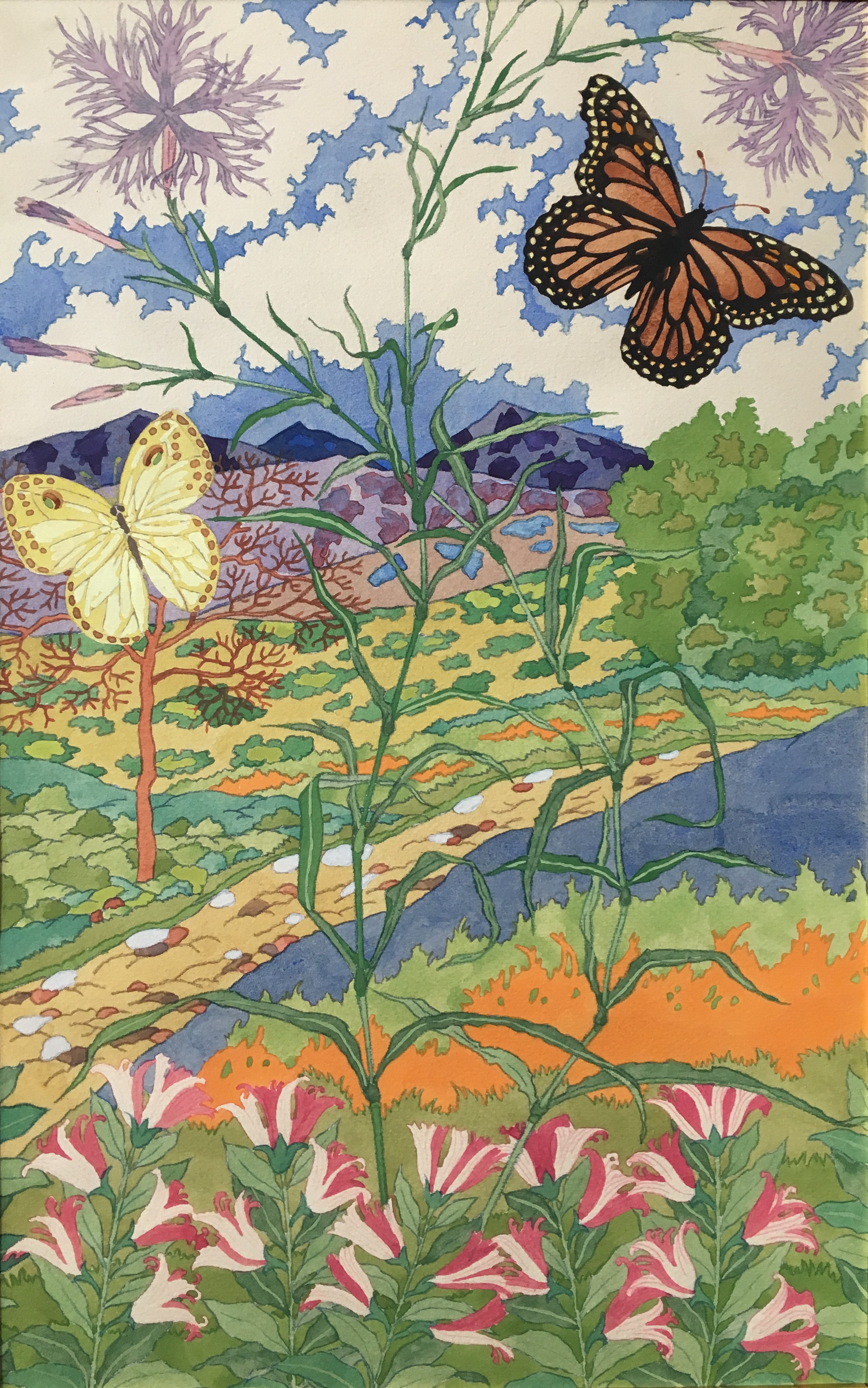 6. Пейзаж с пеперуди, 30-те години на ХХ век; гваш, хартия, 44х29 см; частна колекция