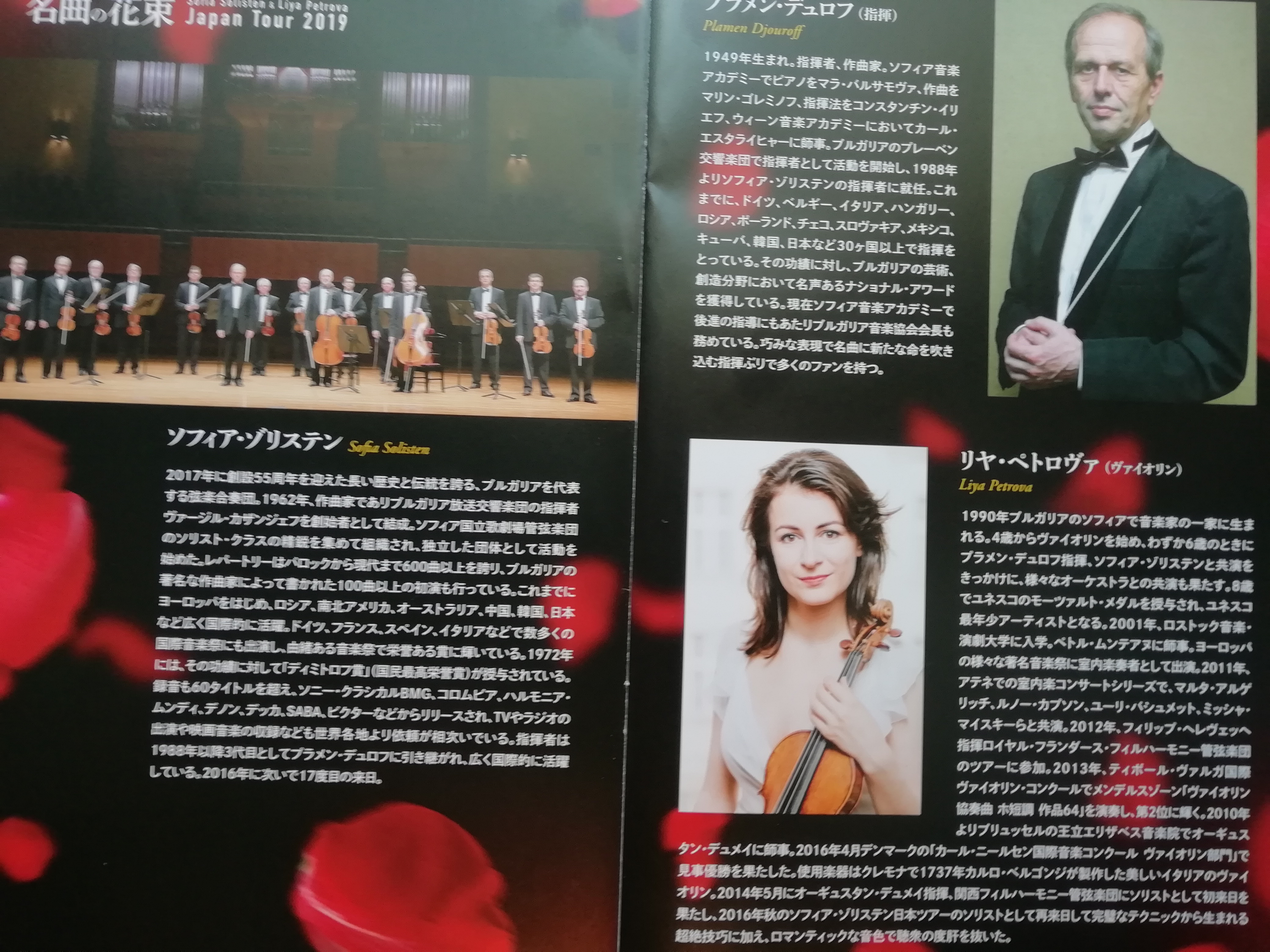 За цялата турне (21 концерта) е подготвена богато илюстрирана брошура със снимки от България и София, с текстове и биографии за музикантите, интервюта с диригента Пламен Джуров и солистката Лия Петрова – цигулка. Първият текст е от посланика на Р България в Япония г-н Борислав Костов.