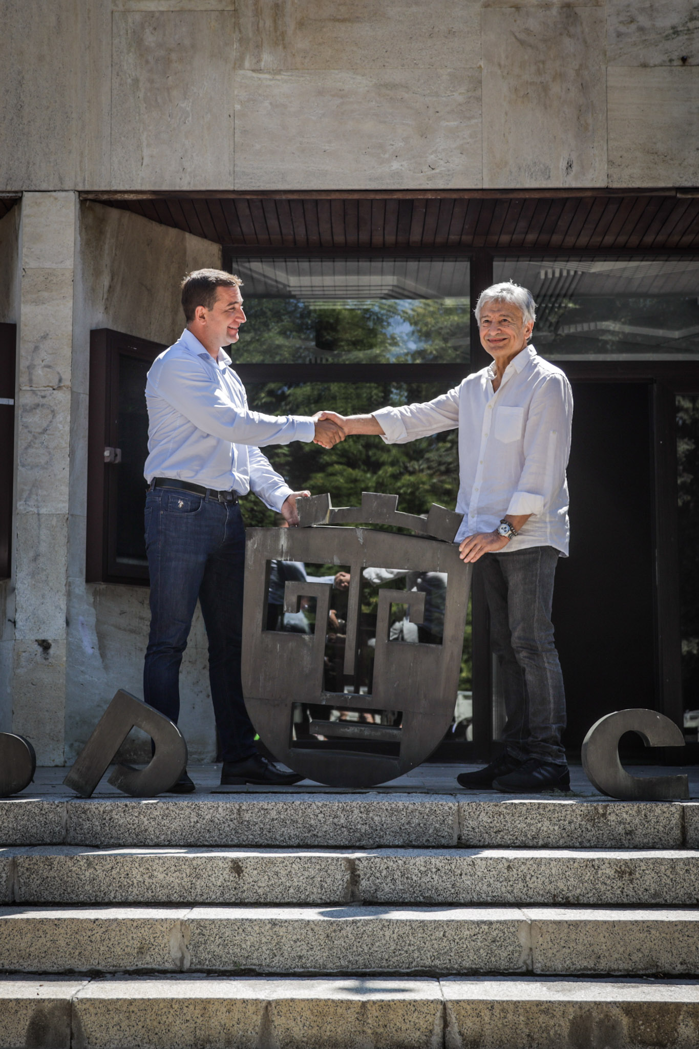 „Предавам на Столична община „лицето“ на нашия театър. Под тази емблема са се събирали и са играли едни от най-големите български актьори. Отговорността, която върви с нея, е огромна, но аз съм сигурен, че ремонтът, който ще протече тук, ще бъде извършен качествено и в срок, така че, когато се върнем в нашия дом, духът в него отново ще заживее, така, както винаги е било“. С тези думи директорът на театър „София“ Ириней Константинов връчи емблемата на инж. Джоргов.