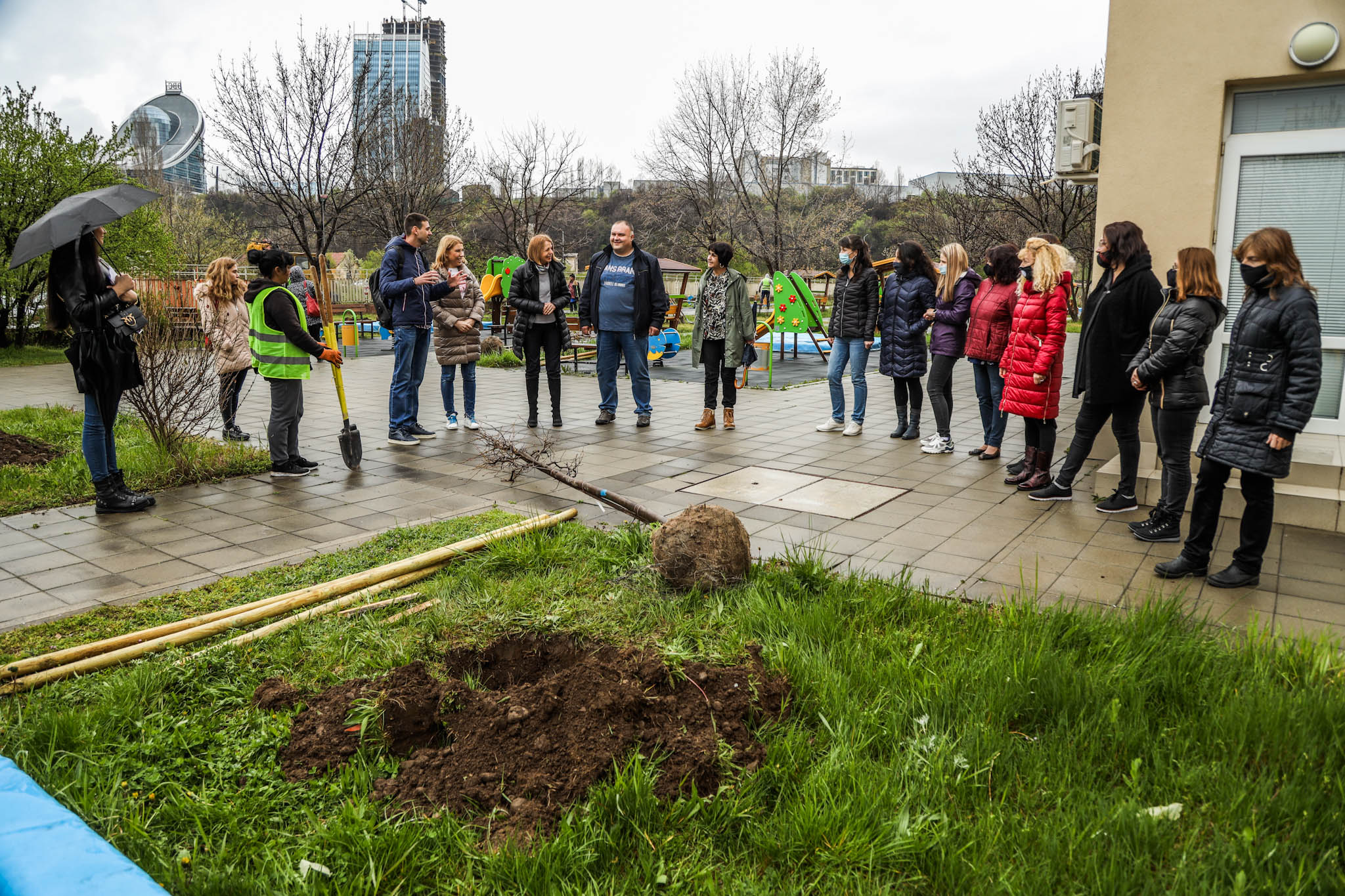 Кметът на София посети детското заведение и разговаря с децата за природата и как трябва да я пазим. "Мотивирани сме да учим децата да се грижат за дърветата", посочи кметът. Всяка група ще участва в засаждането на поне две фиданки и ще продължи да се грижи за тях. "По този начин учим децата как да поливат и полагат грижи за дърветата и растенията в двора", каза г-жа Димитрова.