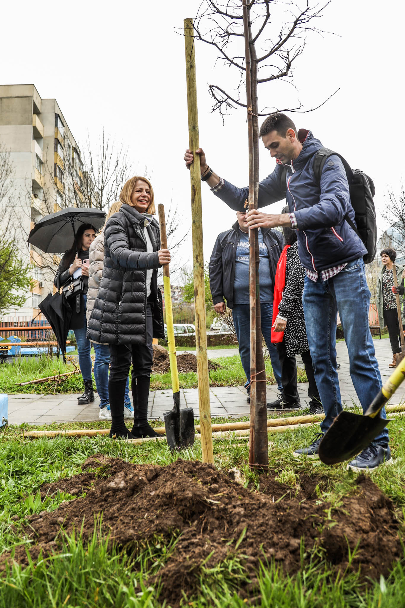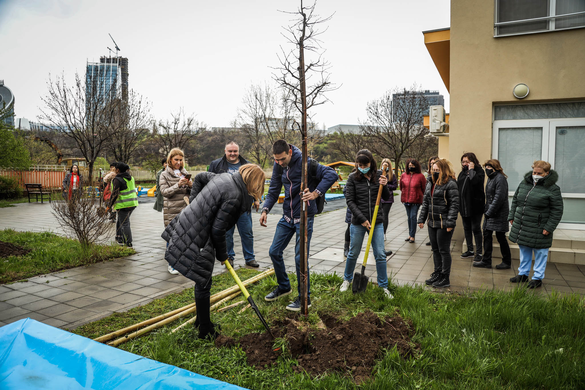 Кметът Йорданка Фандъкова заедно със зам.-кмета по екология Десислава Билева, кмета на район „Искър“ Ивайло Цеков, директора на детското заведение Наталия Димитрова и учители участваха в засаждането на младите фиданки.