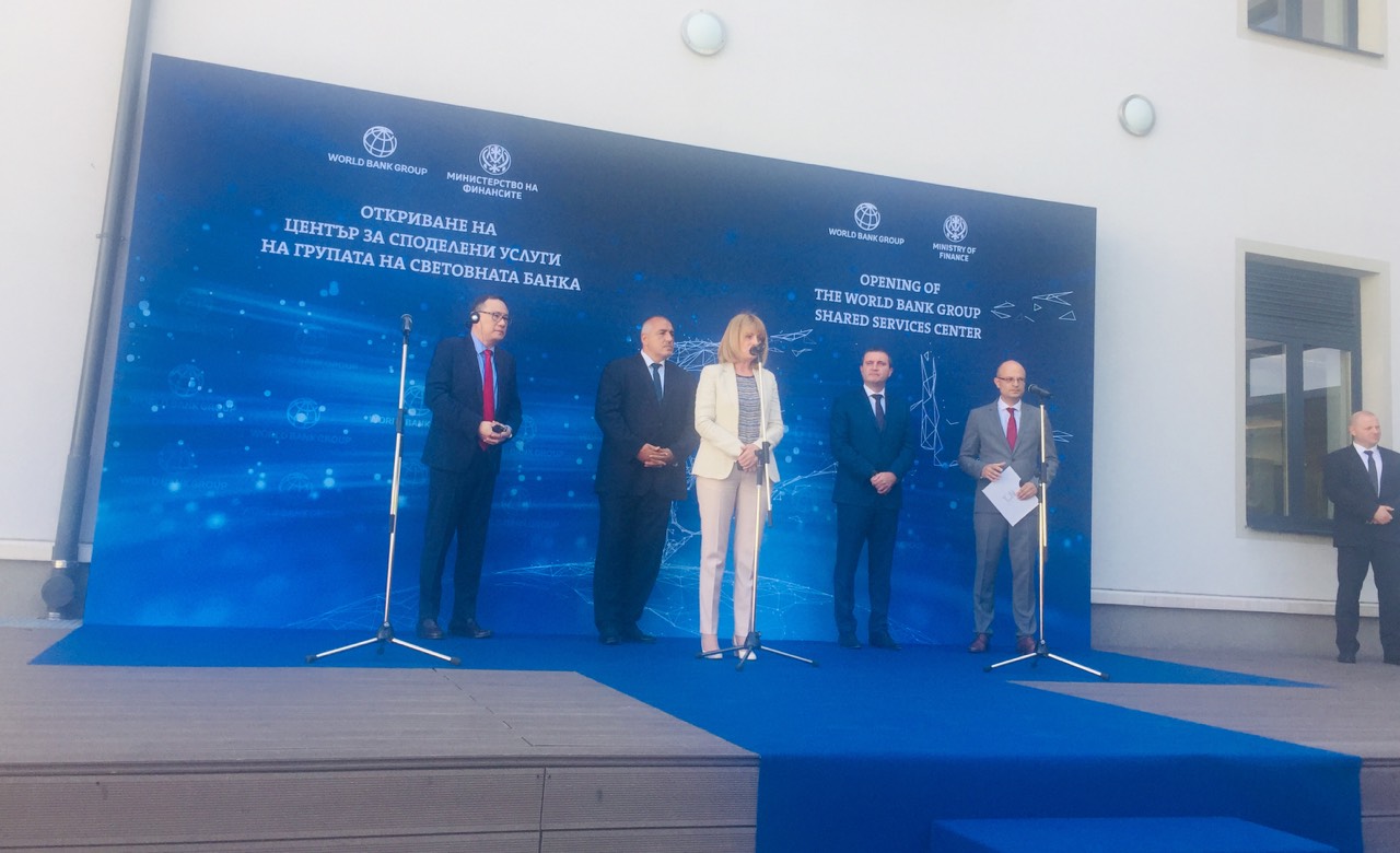 Министър-председателят Бойко Борисов и кметът на София Йорданка Фандъкова откриха Центъра за споделени услуги на Световната банка в София. На събитието присъстваха и управляващият главен административен директор на групата на Световната банка Шаолин Янг, министърът на финансите Владислав Горанов, зам.-кметът на София Дончо Барбалов, изпълнителният директор на Столичната общинска агенция за инвестиции Владимир Данаилов, директорът на София Тех Парк Тодор Младенов.