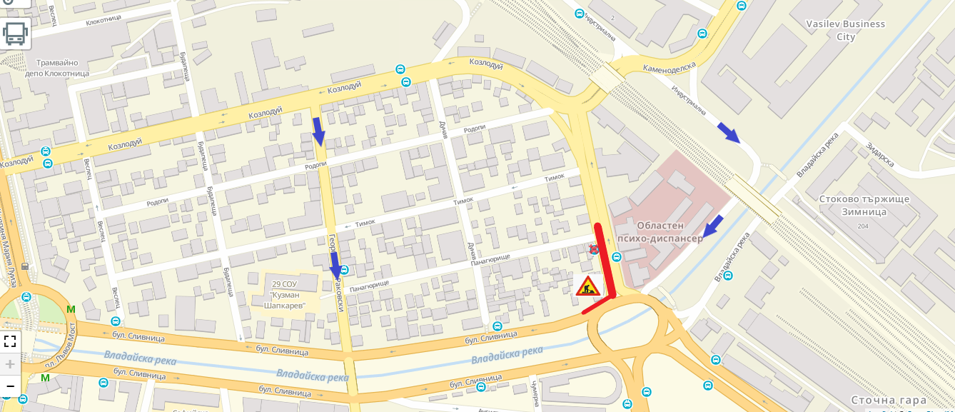 - от 04.03.2020 г. до 18.03.2020 г. (включително) се забранява влизането на пътни превозни средства по западното пътно платно на бул. „Константин Стоилов” между ул. „Панагюрище“ и бул. „Сливница“.