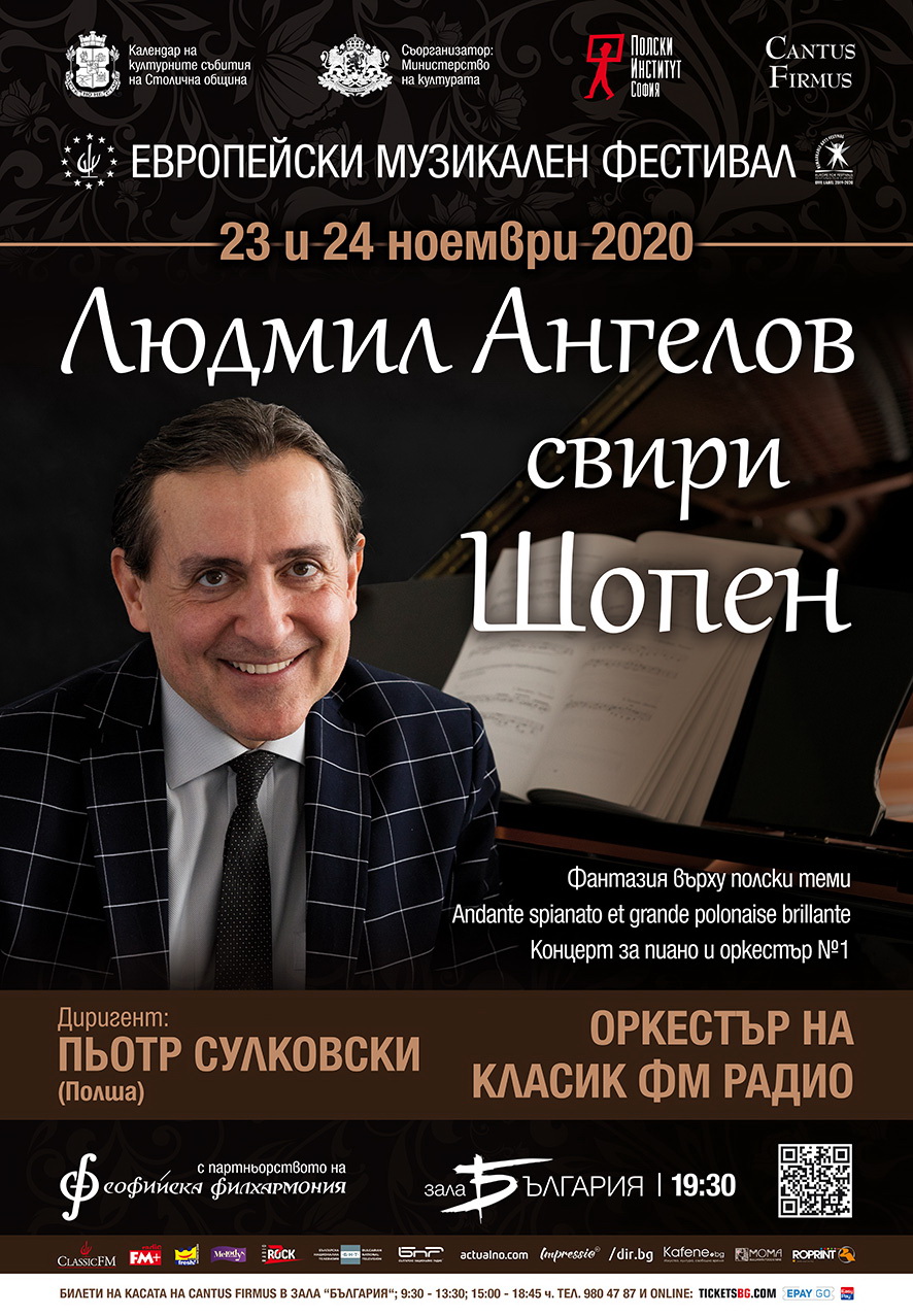 „Европейски музикален фестивал“ 2020 представя втората част от интеграла „Людмил Ангелов свири Шопен“ с Оркестъра на "Класик ФМ радио", която ще се състои на 23 и 24 ноември 2020 в зала „България“ от 19:30 ч.