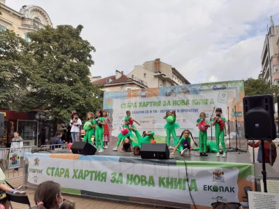 В днешния ден в присъствието на Виктория Бисерова, ръководител на инициативата, и Александър Урманов – изп. директор на „ЕКОПАК България“, много семейства с деца оставиха стара хартия и получиха книга.