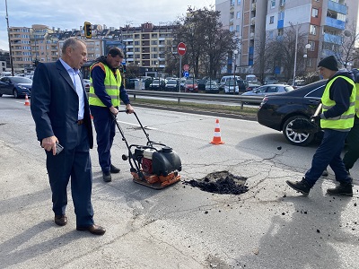 В момента на територията на Столична община работят 13 екипа, като поетапно започват работата с топла асфалтова смес, където атмосферните условия позволяват това.