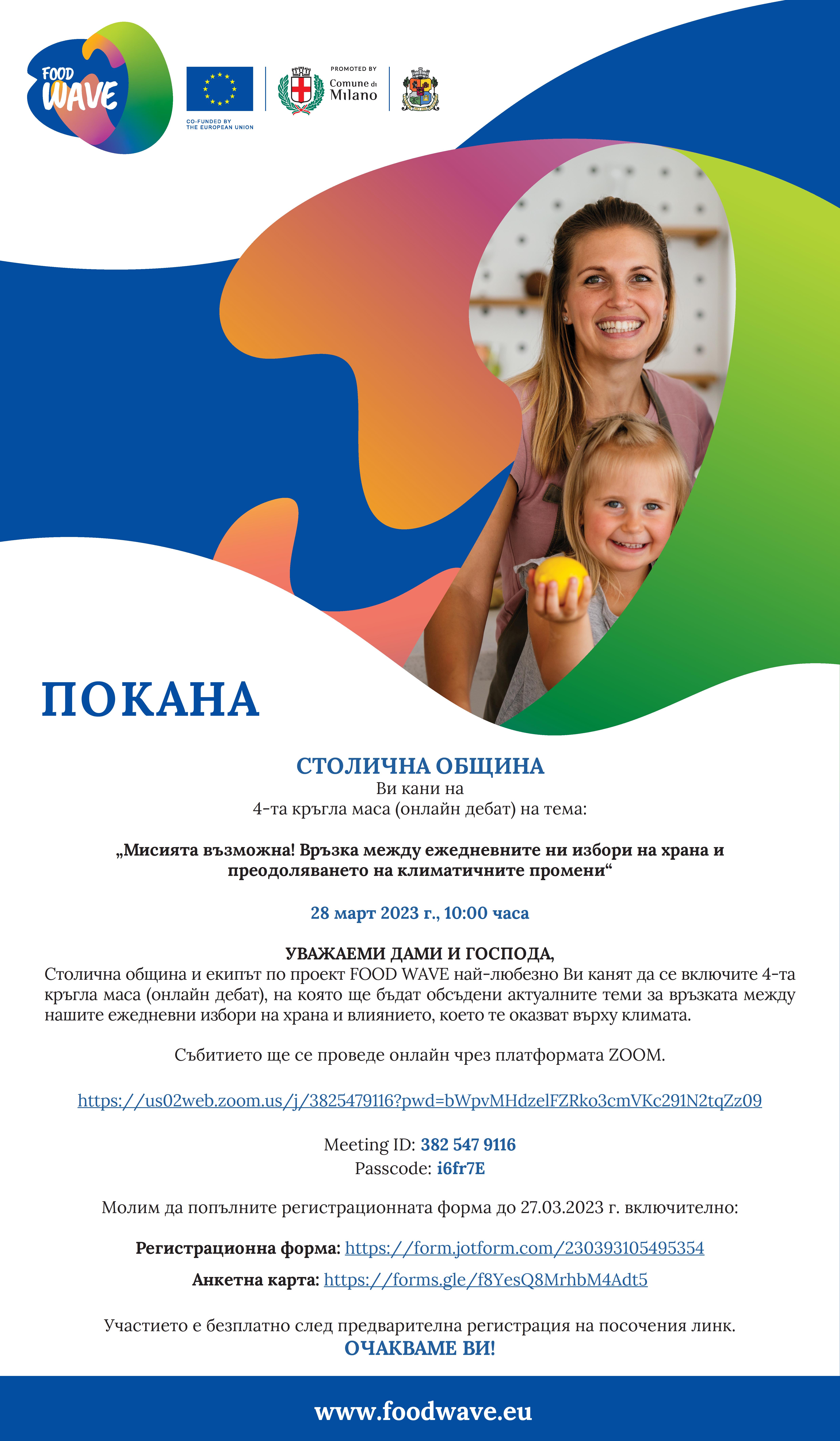Столична община и екипът по проект FOOD WAVE най-любезно Ви канят да се включите 4-та