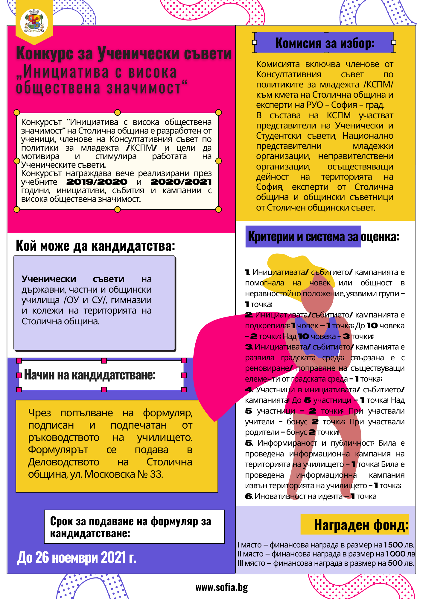 | Конкурс "Инициатива с висока обществена значимост" на Столична община за Ученически съвети |