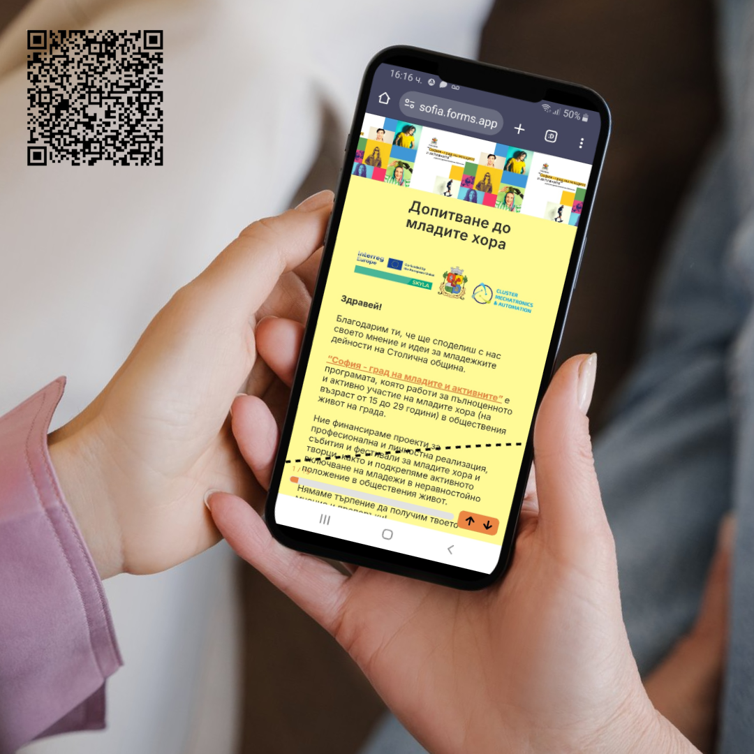 ► Къде? – Можете да попълните проучването онлайн на адрес: https://sofia.forms.app/dopitvane-do-mladite-hora или през Вашия смартфон през QR кода;