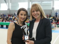 Кметът на София г-жа Йорданка Фандъкова поздравява участничките в турнира „Simona` s cup“