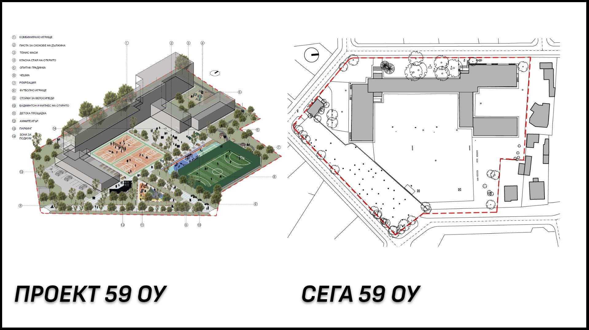 The two pilot projects will be implemented at 59 Primary School “Vasil Levski” and 29 Secondary School “Kuzman Shapkarev”. They were selected because they are of different sizes and locations, and in order to develop solutions for spaces in the central and peripheral parts of the city, for schools with over 350 students, as well as for smaller ones. A systematic approach was applied in developing the concept - a study of global good practices for the design and use of schoolyards, an analysis of the existing environment, and a survey of the attitudes of the local community.