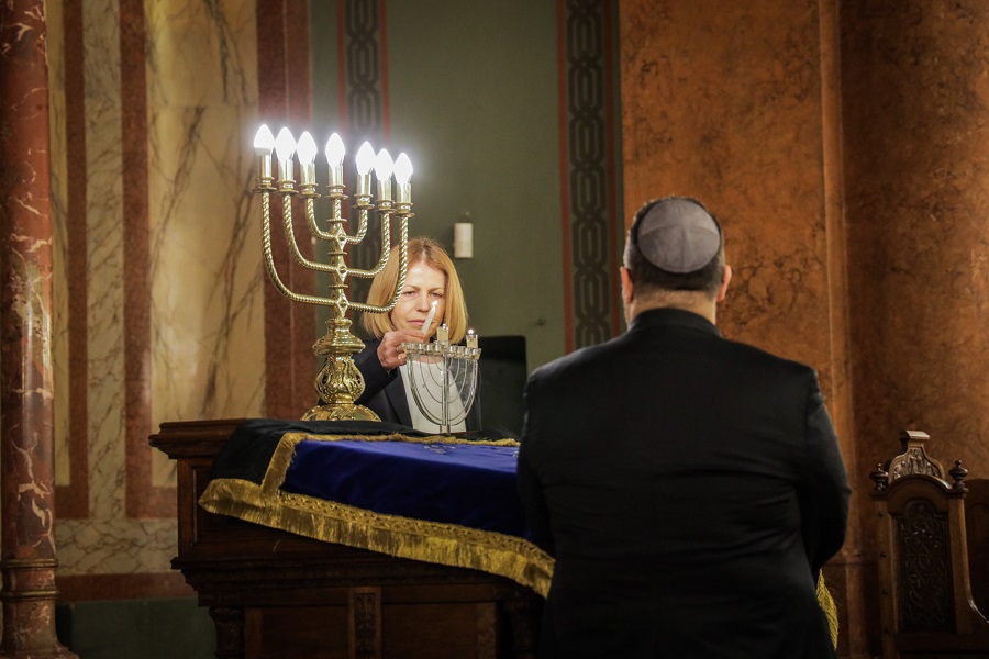 At the invitation of the Central Israeli Spiritual Council and the "Shalom" Organization of Jews in Bulgaria, Sofia Mayor Yordanka Fandakova lit one of the candles of the Hanukkah candlestick in the Sofia Synagogue. As part of the ceremony, the candles were lit by the President of Bulgaria, Rumen Radev, H.E. Ambassador of the State of Israel in Bulgaria, Yoram Elron, Prof. Dr. Alexander Oskar, Chairman of UEB "Shalom" and Prof.Dr. Tsvetomir Dimitrov, Director of the "St. John the Baptist" University Hospital – Sofia.