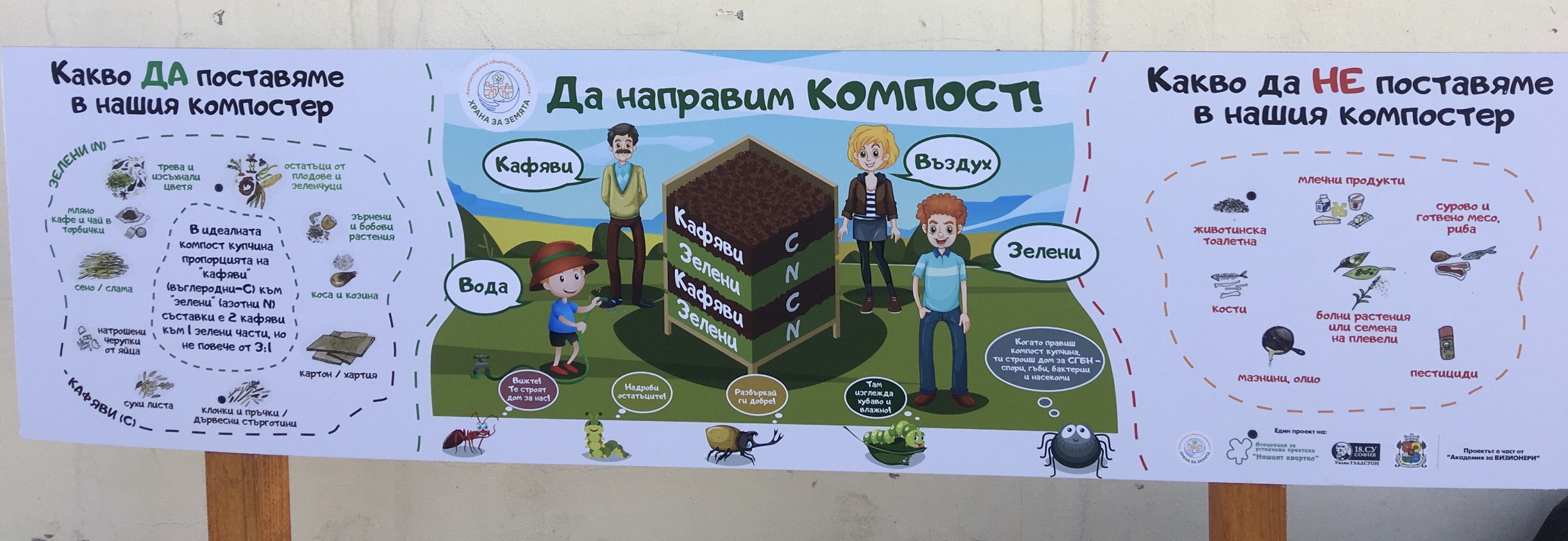 Целта на проекта е въвеждането на система за разделно събиране на биоотпадъци в училищата и въвличане на учениците в действия за компостиране чрез изграждане на компост зона. Пилотно проектът стартира в 18. СУ „Уилям Гладстон“, където беше изградена и оборудвана компост зона в двора на училището, реализирани четири образователни работилници с експерти за създаване на нови навици и поведение сред учениците; проведен един компост пикник за целевата група, както и формирани училищни екопатрули от ученици, които съблюдават работата на компостера и разделното събиране на хранителните растителни остатъци.