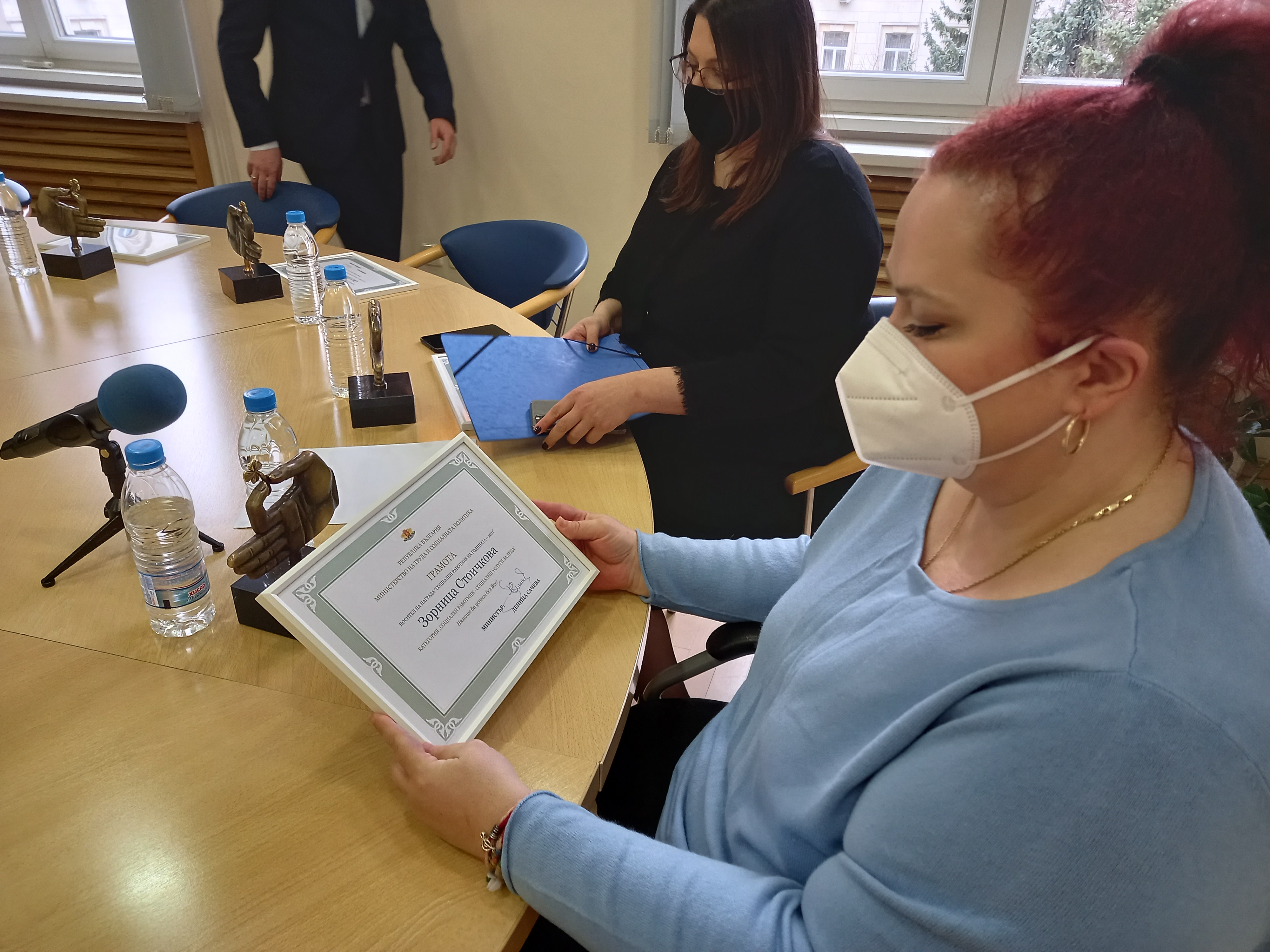 Тя връчи специално изработената пластика и грамота за призовото място в категория „Социален работник – социални услуги за деца“ на Зорница Стоичкова  от Фондация „Здраве и социална работа“.