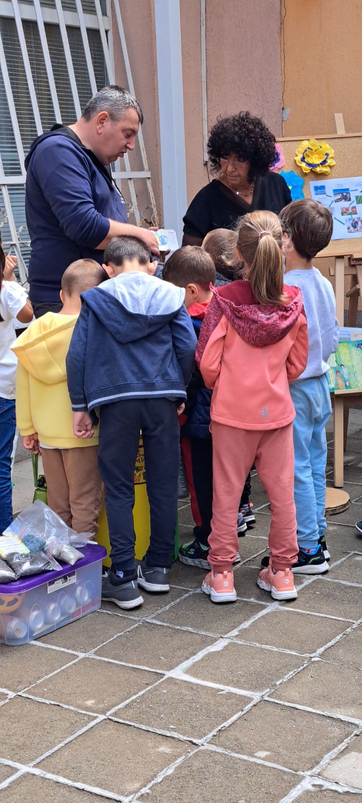 В изпълнение на Дейност № 4 провеждането на кампании за повишаване на осведомеността във връзка с разделното събиране и рециклирането за населението и с оглед на това, че детските градини и училища са част от групите в информационната кампания, екипът по проекта проведе кампании под формата на открит урок с децата от 78 СОУ „Христо Смирненски“ – гр. Банкя, 160 ОДЗ „Здравец“ в кв. Драгалевци и 64 ОУ „Цар Симеон Велики“ в кв. Симеоново. Експертите от екипа за изпълнение на проекта поднесоха на децата темите за разделното събиране на различените видове отпадъци със забавна викторина, рисунки на тема „Пътят на храната“, игри и демонстрации нагледно на продукти, получавани след преработка на биоотпадъци и пластмаси. Децата активно се включваха в дискусиите, като показаха и много знания по въпросите от викторината. Засегната беше и една от важните теми с нерегламентираното изхвърляне на излезлите от употреба автомобилни гуми и бяха разгледани различни начини за справяне с този проблем. Децата показаха, че от стари гуми, с помощта на малко фантазия и подбрани цветове могат да се получат  красиви и разнообразни нещо, голяма част от които може да намеря приложение и като украса за градината или саксии за цветя.