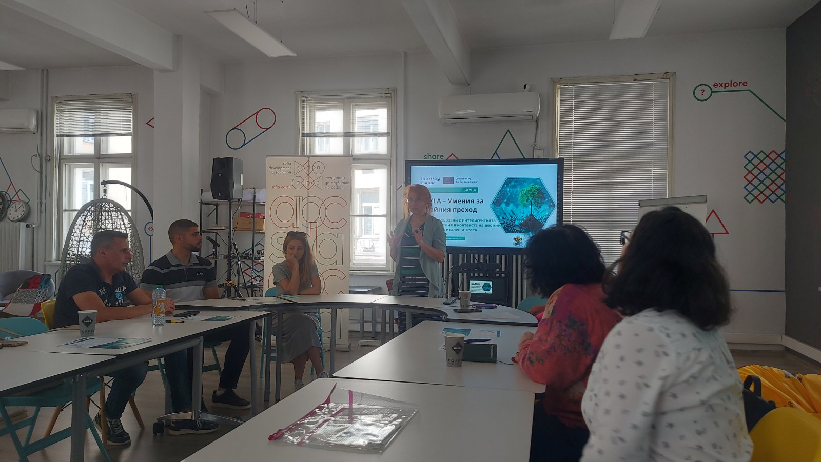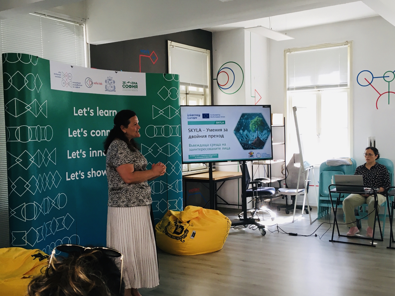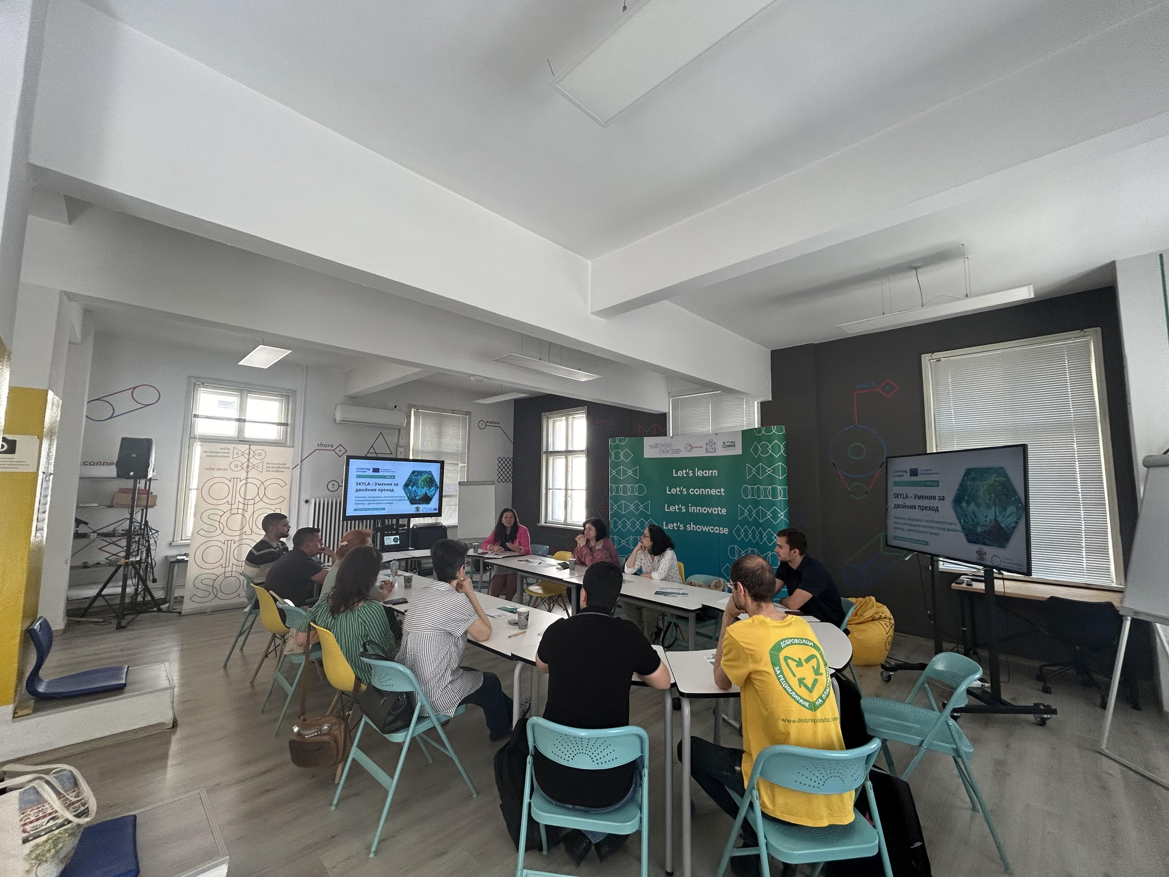 На 4 юли в Софийската лаборатория за иновации се проведе въвеждаща среща по проект „Умения, свързани с интелигентната специализация в контекста на двойния преход” (SKYLA - Smart Specialisation Skills Ecosystems for the Twin Transition), финансиран по Програма „Интеррег Европа” 2021 - 2027 на Европейския съюз.