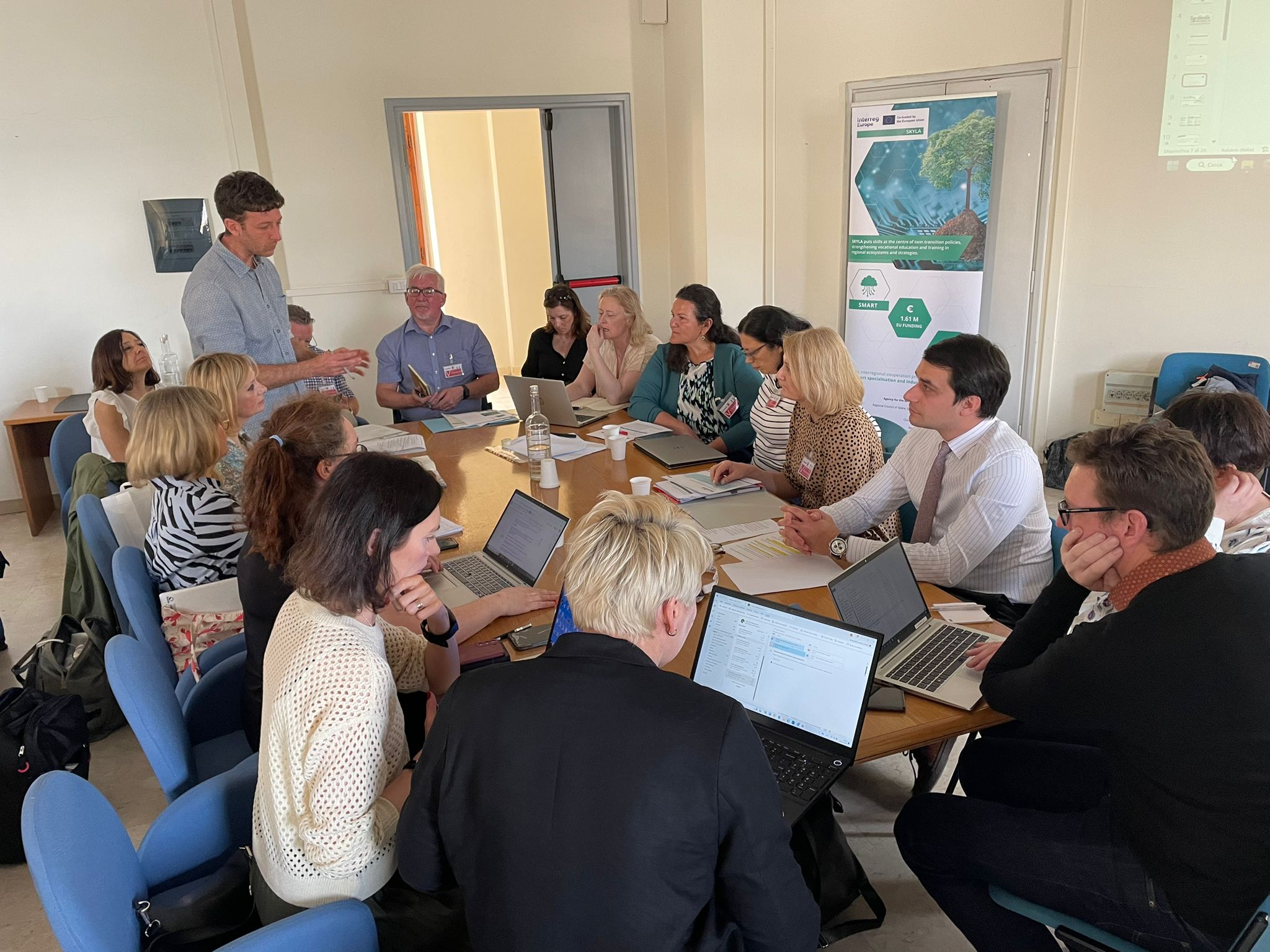 По време на срещата партньорите и заинтересованите страни по проекта SKYLA обсъдиха напредъка на своите планове за действие, насочени към подобряване на регионалните политики за развитие на умения в контекста на двойния преход и за по-тясно сътрудничество между работодатели, обучители и работещи.