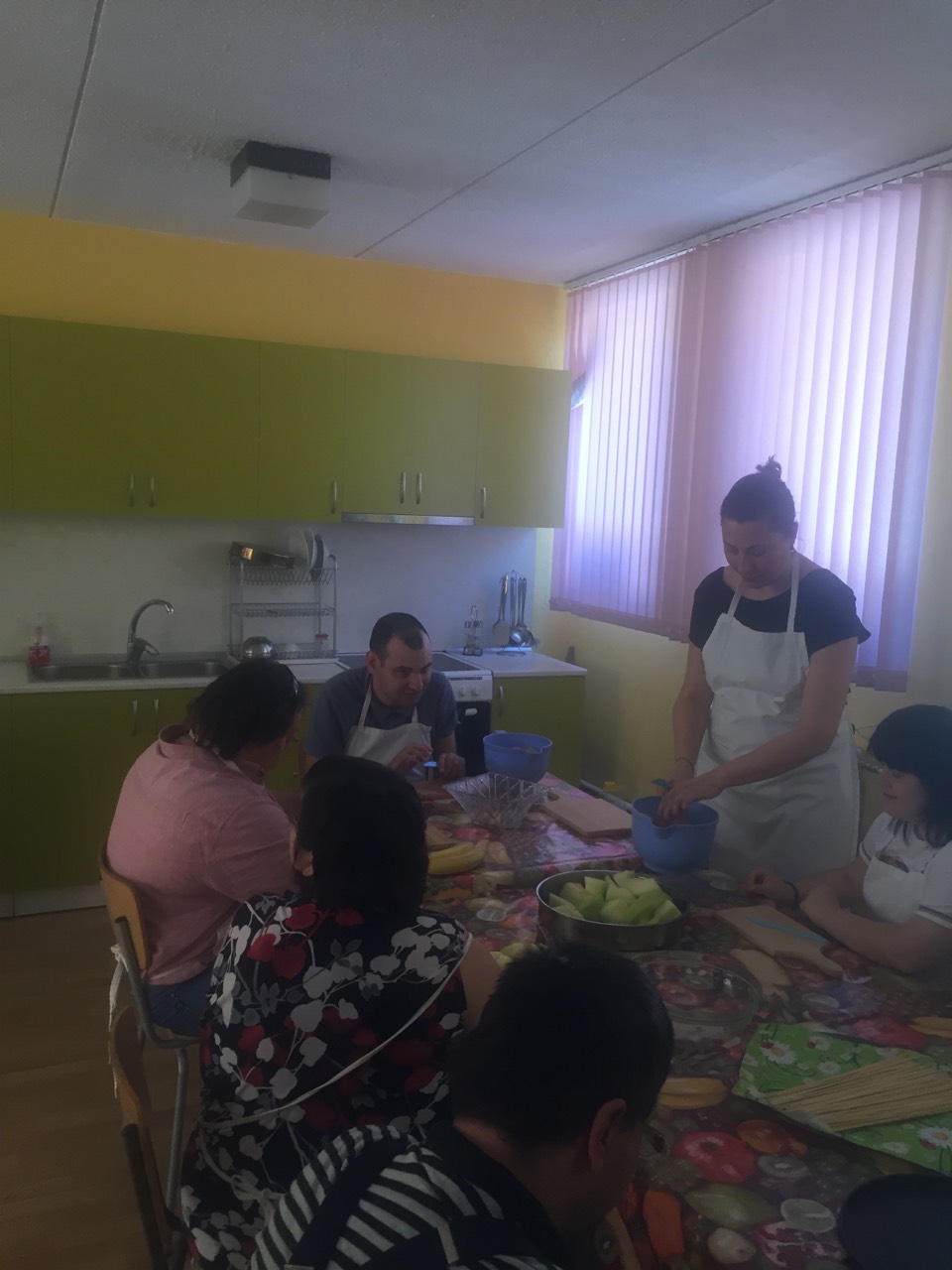 Днес възпитаниците на дома показаха кулинарните си умения. Вторник е отреден за Клуб "Вкусно". Често правят баница, приготвят сандвичи, плодови салати и плодови шишчета. Кулинарните занимания започнали преди 5 години. Като си отидат вкъщи всички разказват на родителите си какво са правили през деня в двете кухни на центъра" – разказа директора Йотка Тодорова.