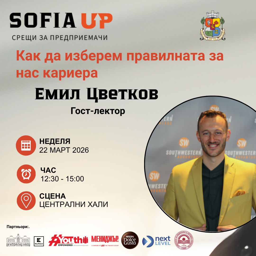 Sofia Up е създадена като отворена платформа за споделяне на знания, практически опит и реални примери от предприемаческата среда. Форматът ще се провежда веднъж месечно, с вход свободен, и има за цел да изгради активна и устойчива предприемаческа общност в София, чрез срещи с утвърдени професионалисти, интерактивни дискусии и практически насочено съдържание.