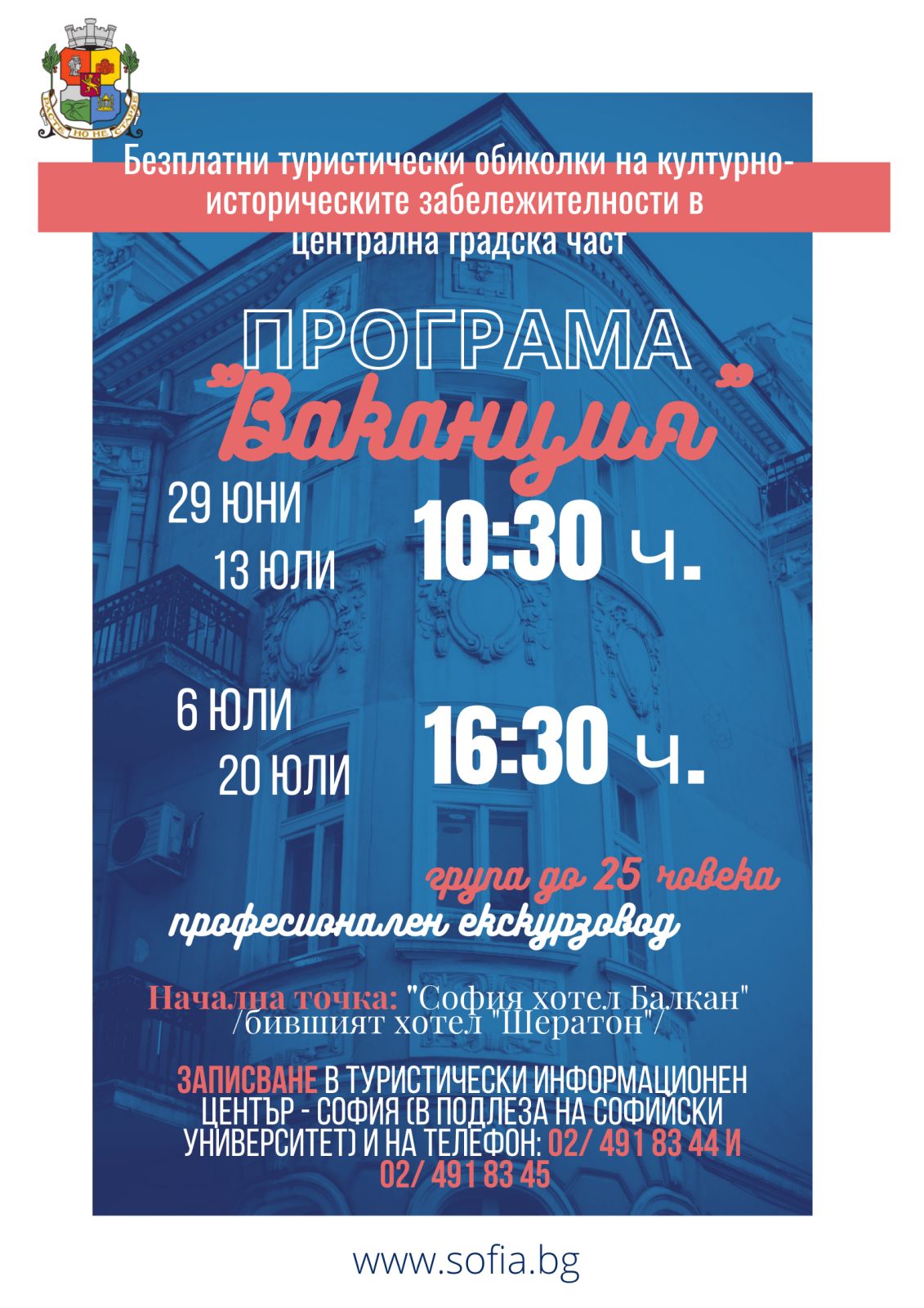 Безплатни туристически обиколки се организират от Програма „Ваканция“ на Столична община