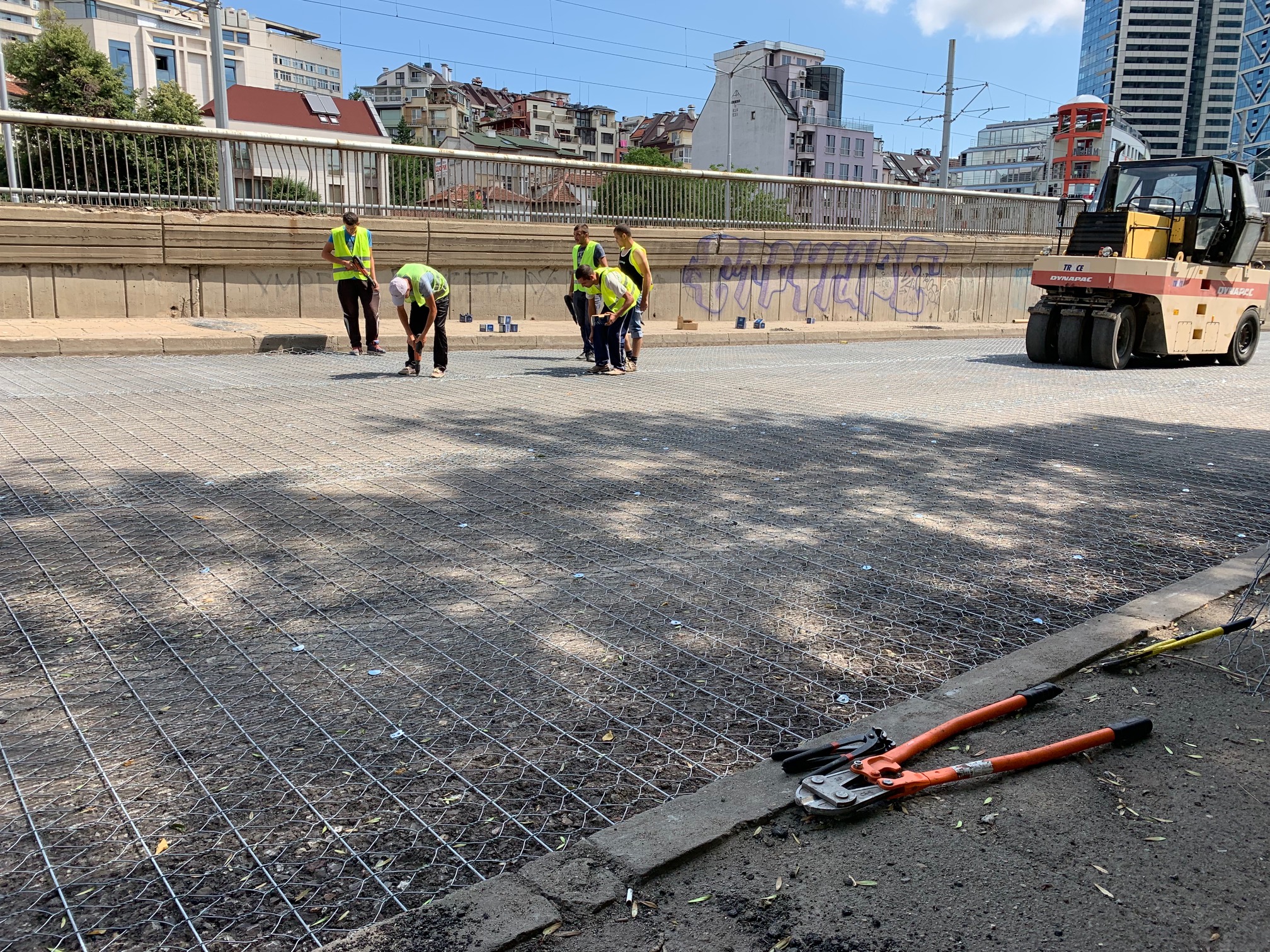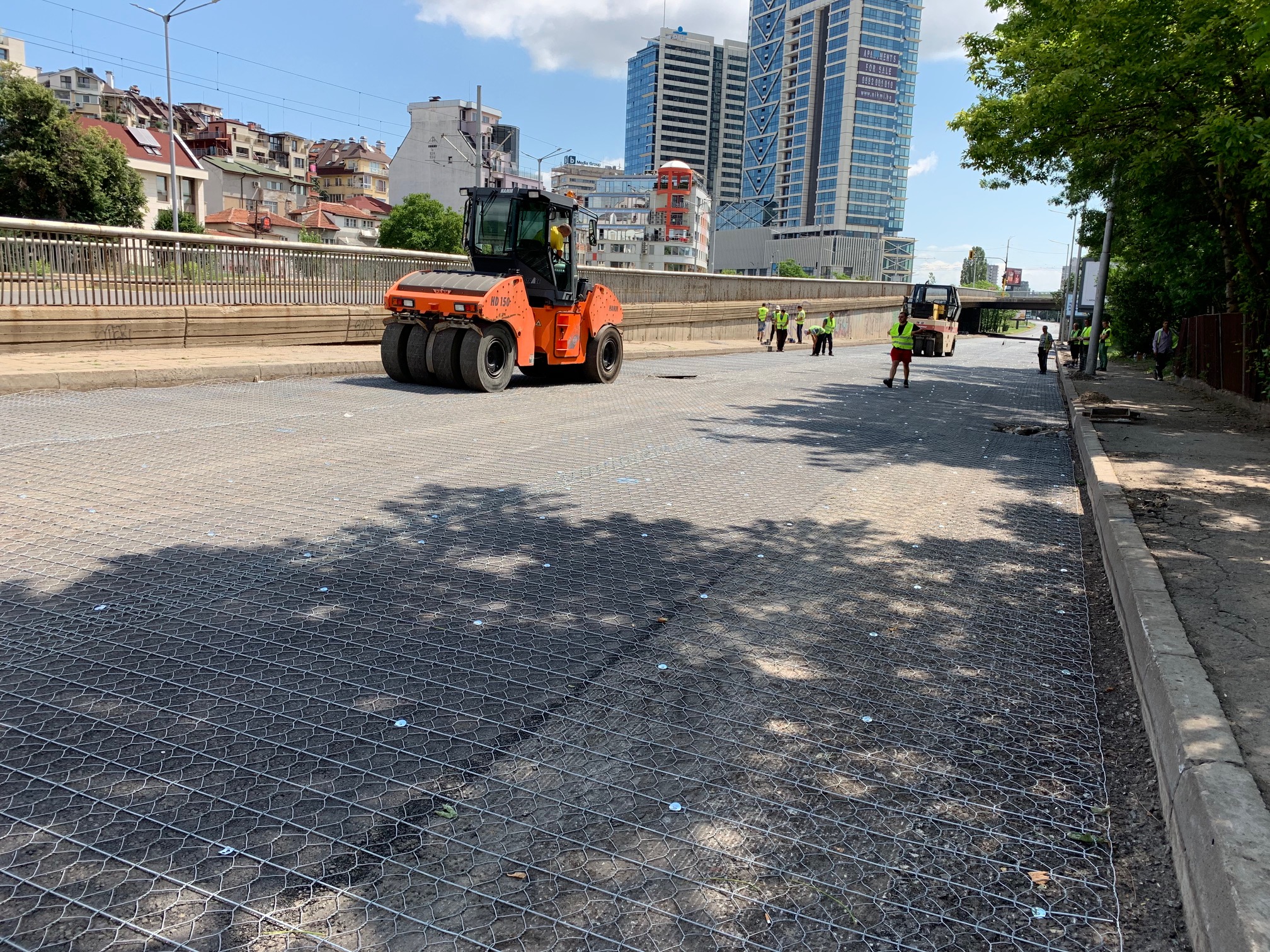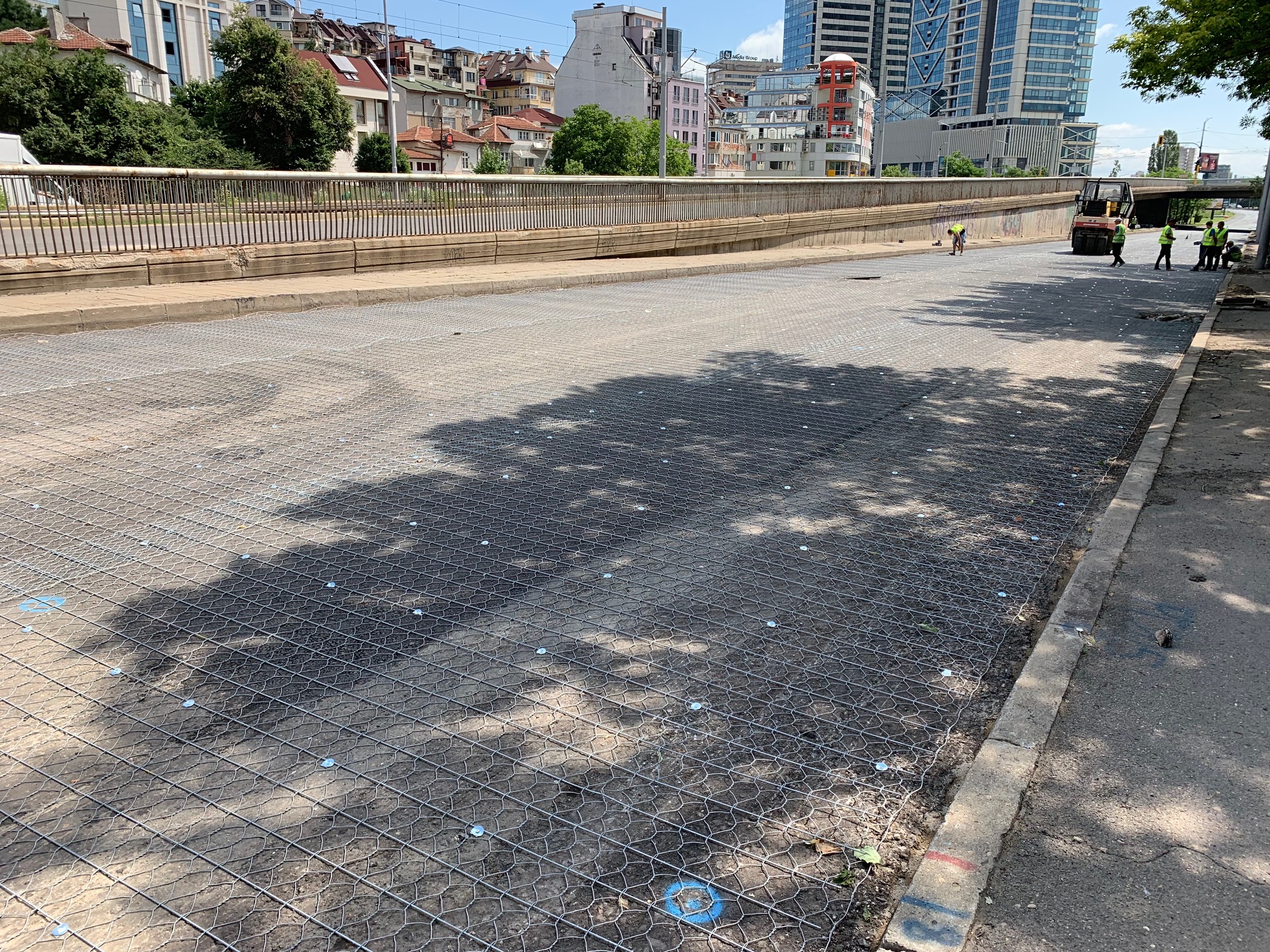 Положени са около 9 хил. кв. м метална мрежа на пътно платно на бул. “България“. В момента се ремонтира южното пътно платно в участъка между бул. “Ив. Гешов“ и бул. “Витоша“.