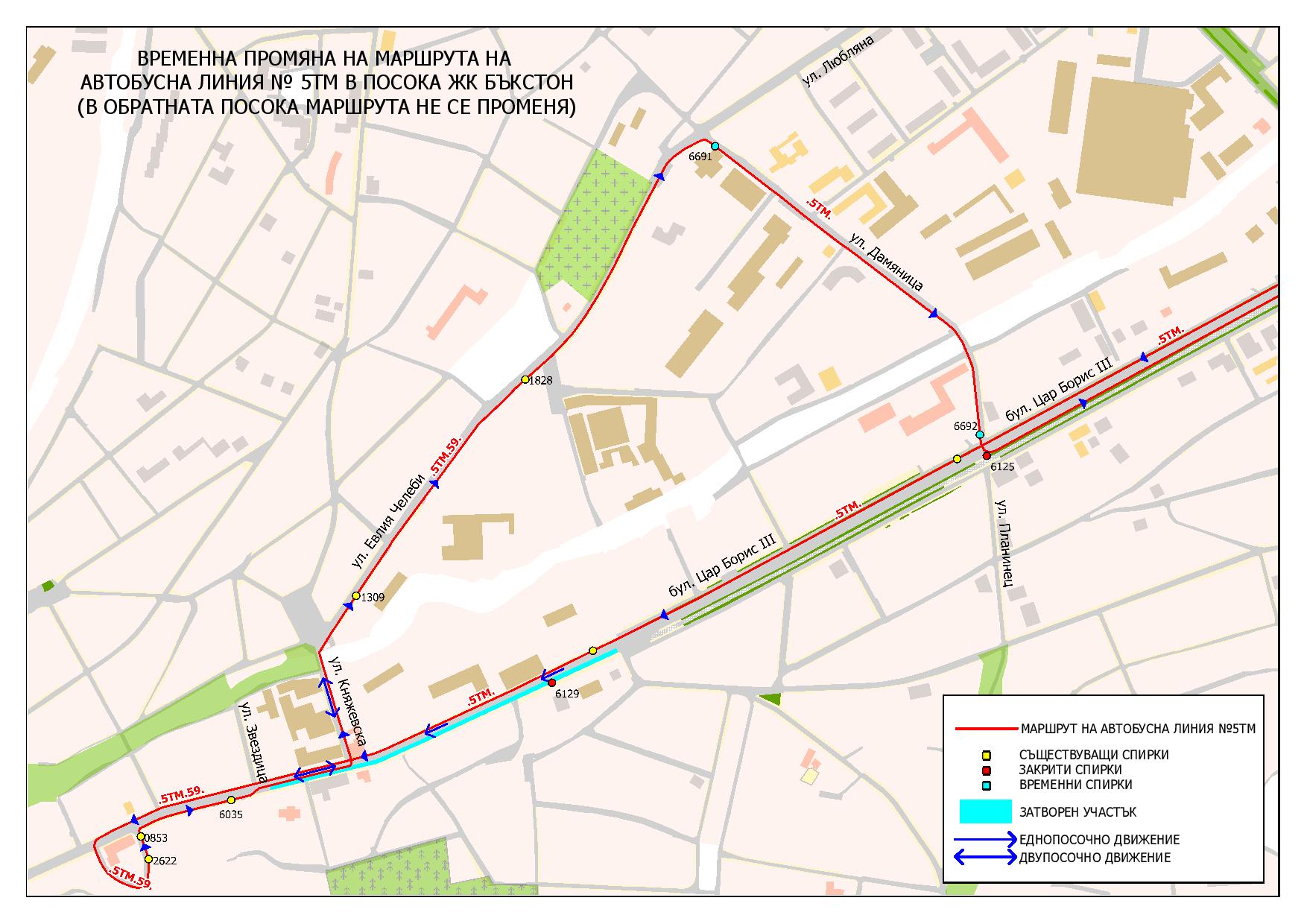Временна промяна на маршрута на автобусна линия № 5ТМ