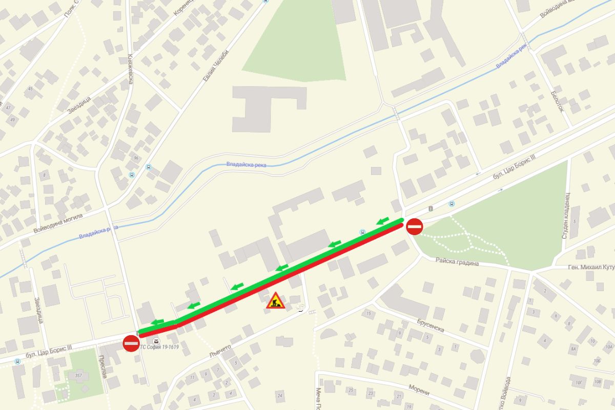 От 22 юни 2023 г. се въвежда нова временна организация на движението в кв. „Княжево“ във връзка с реконструкцията на трамвайния път. Затваря се за движение южното пътно платно и зоната на релсовия път от ул. „Княжевска“ до ул. „Райска градина“. Движението в посока изход от София ще се извършва еднопосочно в крайната северна пътна лента, а движението в посока вход София ще се осъществява по ул. „Княжевска“, ул. „Евлия Челеби“ и ул. „Любляна“. Тази временна организация ще продължи около два месеца.