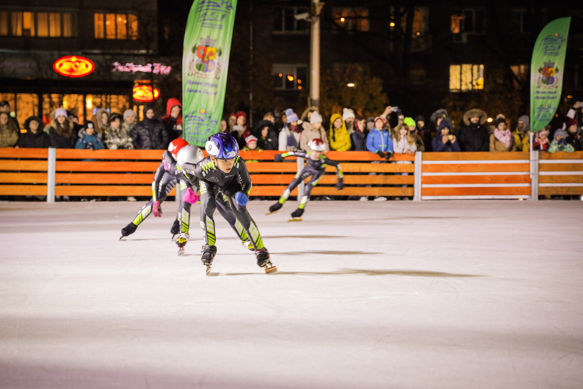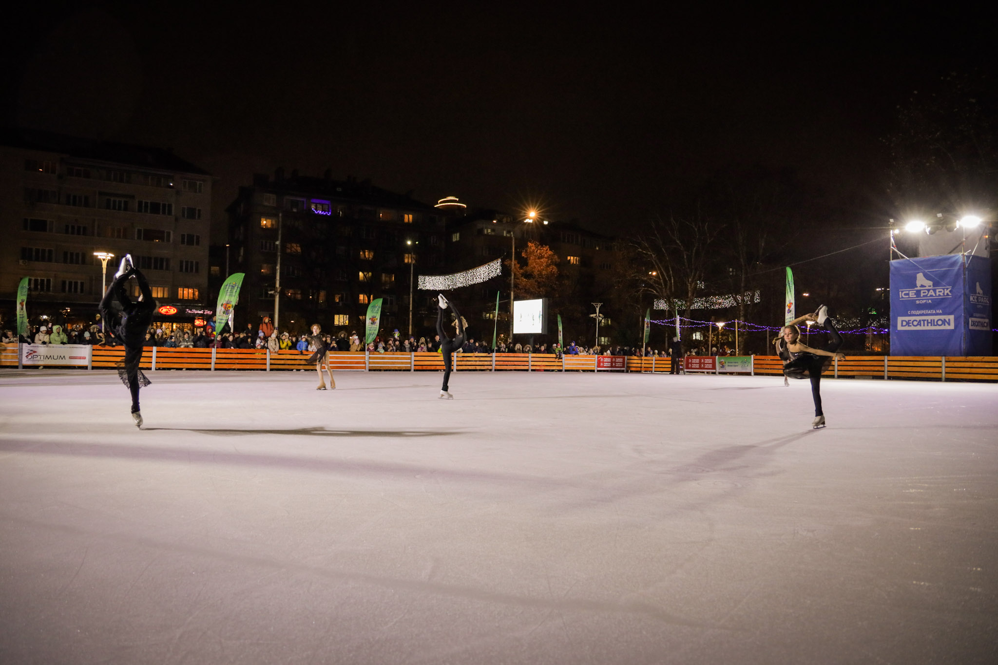 Събитието по откриването бе предхождано от демонстрации на българските школи в ледените спортове. Представители на клубове по фигурно пързаляне и по шорттрек показаха майсторство и събраха погледите на стотиците дошли за церемонията. Най-търсена за снимки, селфита, интервюта и автографи бе Евгения Раданова, която първа се пусна по направения лед и припомни уменията си в шорттрека, с които спечели за България 3 Олимпийски медала от игрите в Солт Лейк сити 2002 и Торино 2006. Спортната икона връчи на Фандъкова огромен букет в знак на благодарност към Столична община за направата на Ледения парк, след което представи демонстрациите на младите ни таланти и специфичните техники в шорттрека. Най-добрите български състезатели във фигурното пързаляне също презентираха последните си изпълнения под ръководството на Силвия Денкова и треньорката Ина Лутяй. Точно в 18 ч. сирена огласи откриването и първата обиколка из приказно осветените пътеки.