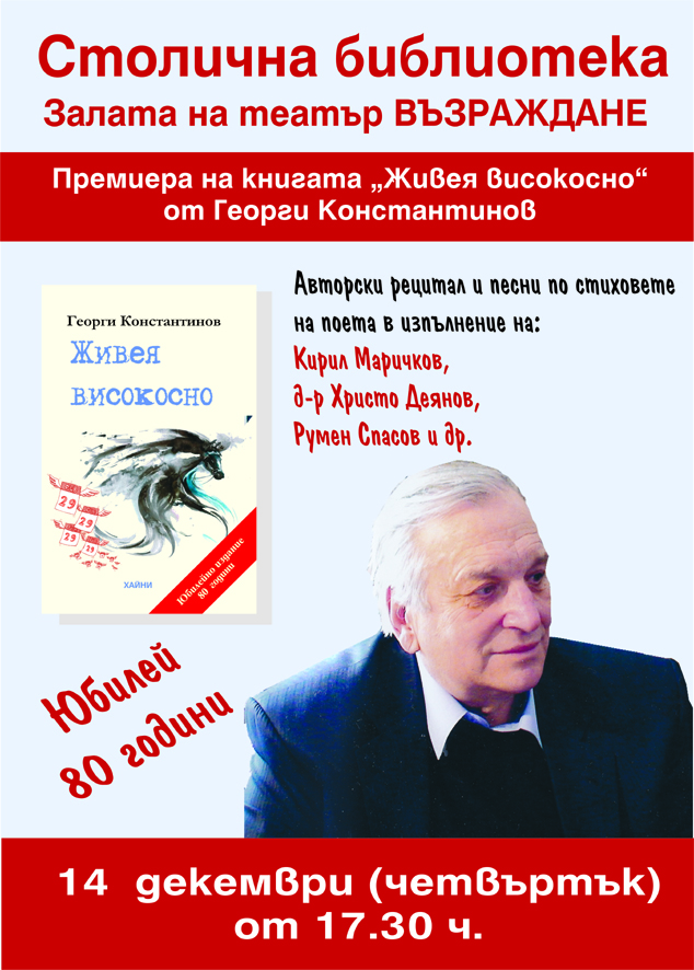 Споделете завладяващата поезия на Георги Константинов в авторско изпълнение и любими песни по негови стихове на юбилейния му рецитал в Столична библиотека!