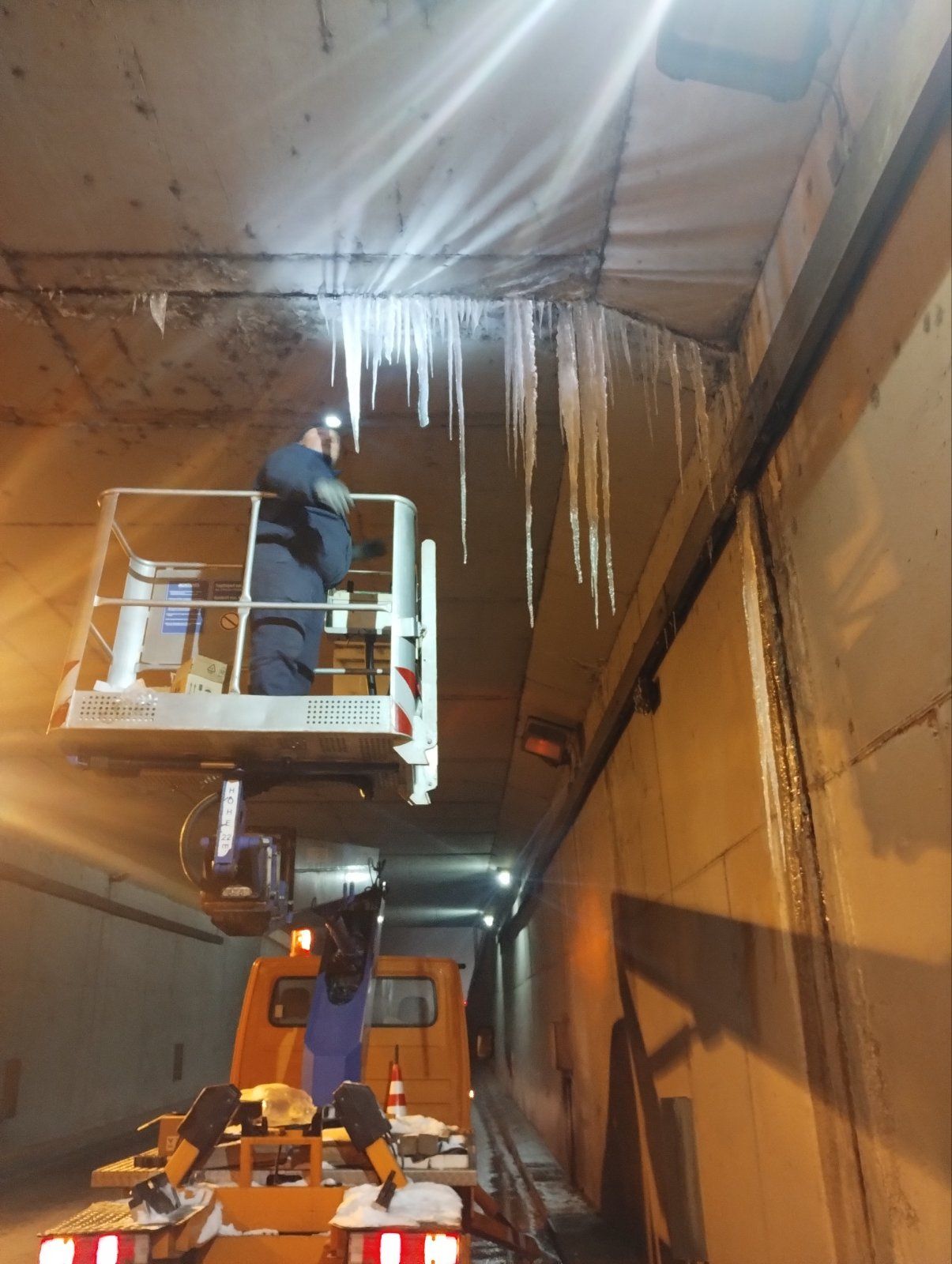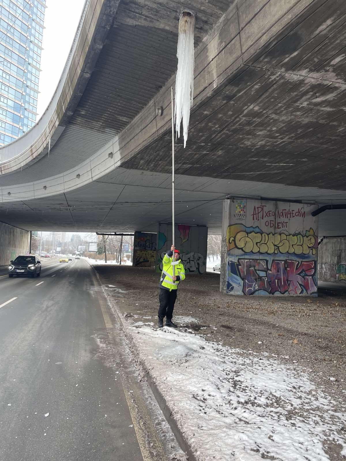 "Три екипа на дирекция „Аварийна помощ и превенция“ отстраняват ледени висулки от надлези и мостови съоръжения в града" – каза директорът на АПП Красимир Димитров.