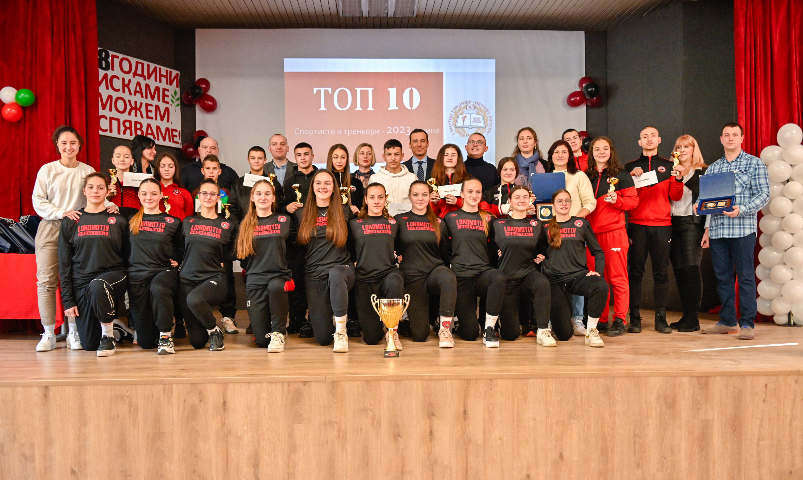 След награждаването кметът Васил Терзиев и директорката на 153. Спортно училище "Неофит Рилски" Мариана Цветкова откриха реновирания физкултурен салон.
