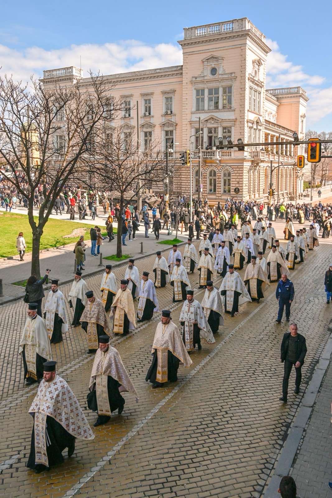 На литургията присъства кметът на София Васил Терзиев. Той се включи и в траурното шествие, което премина по улиците на София и стигна до катедралата “Св. Неделя”. Ковчегът на Патриарх Неофит беше пренесен от гвардейци, под звуците на траурния марш.