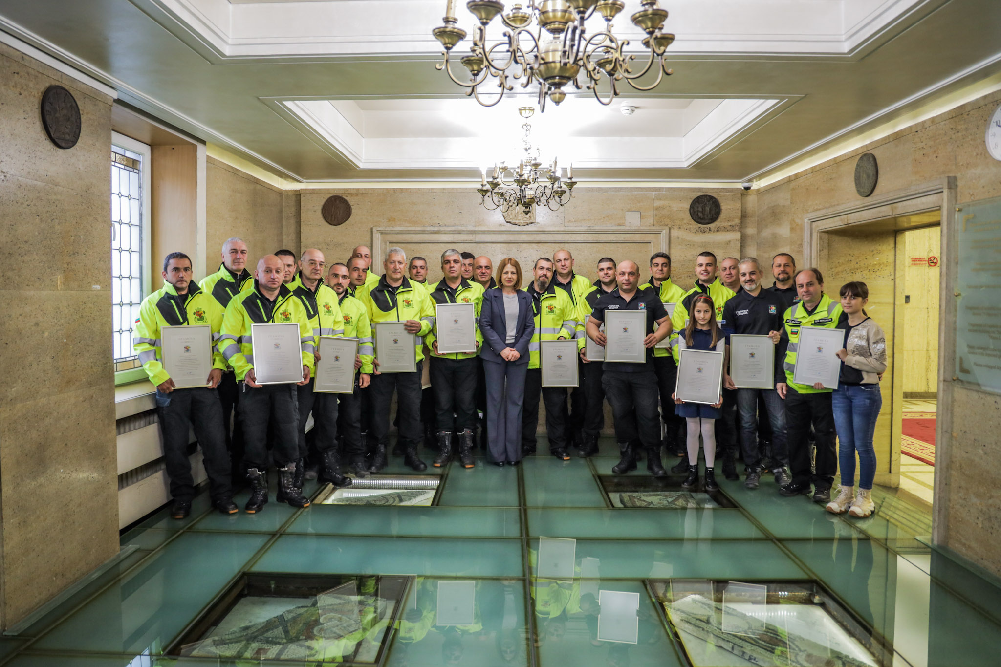 Общо 28 мъже и една жена бяха удостоени от кмета на София с грамоти за проявен професионализъм, смелост и всеотдайност при работата им в Турция.