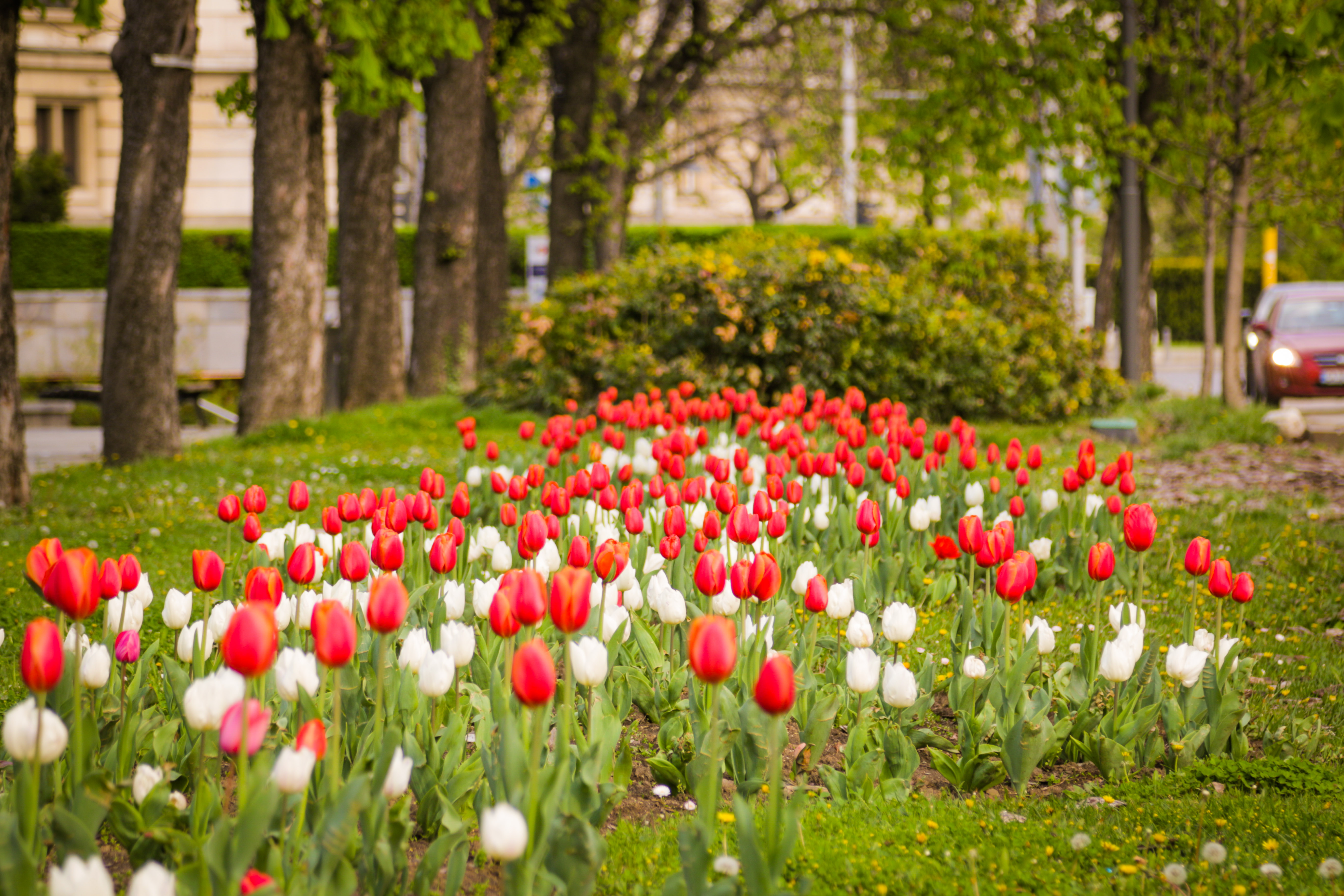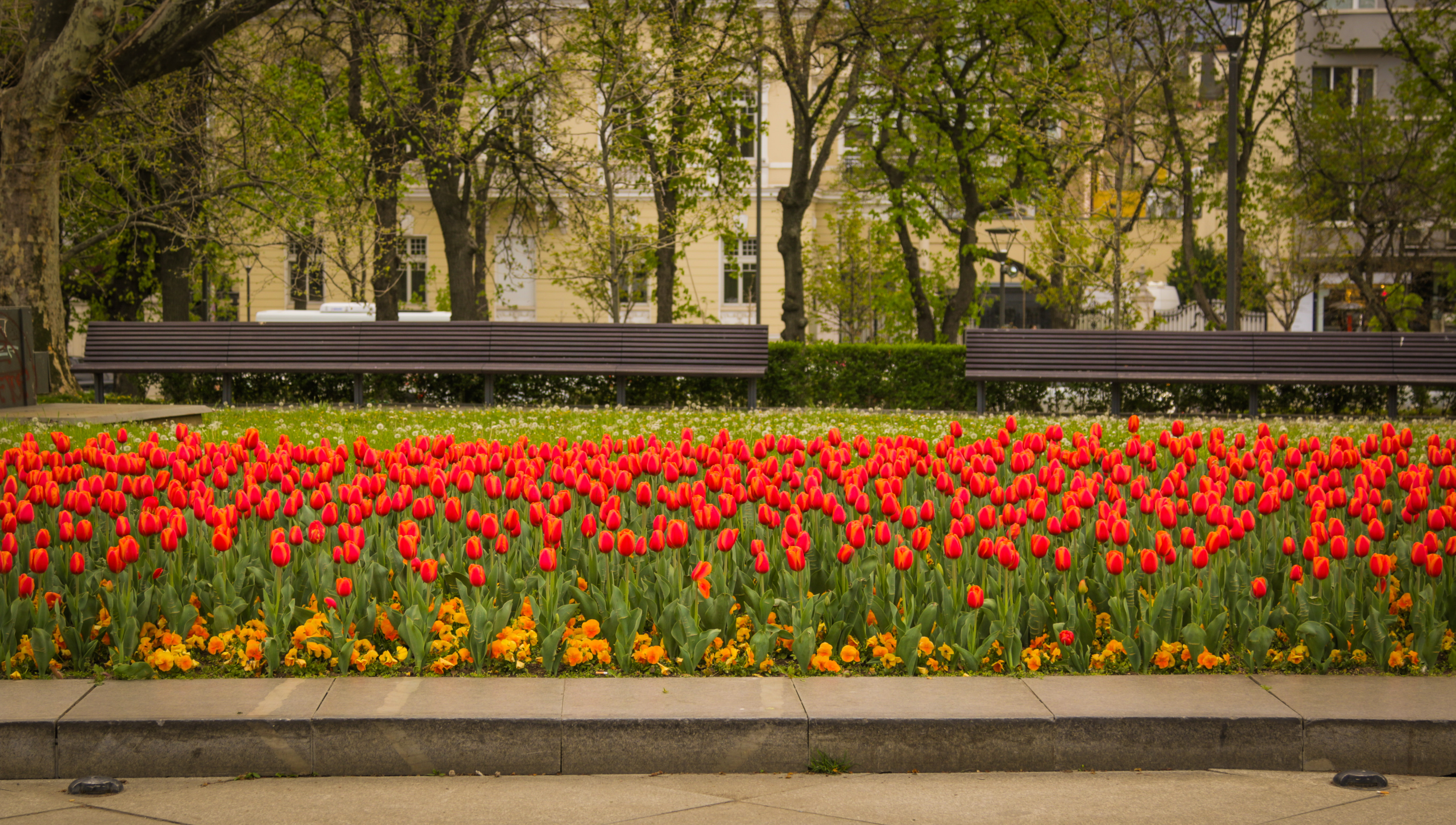 Лалета са разцъфнали в Градската градина, Княжеска градина, парка на НДК и др. Цветни композиции на зеленина и различни пролетни растения оформят ивицата на бул. “Евлоги и Христо Георгиеви“.