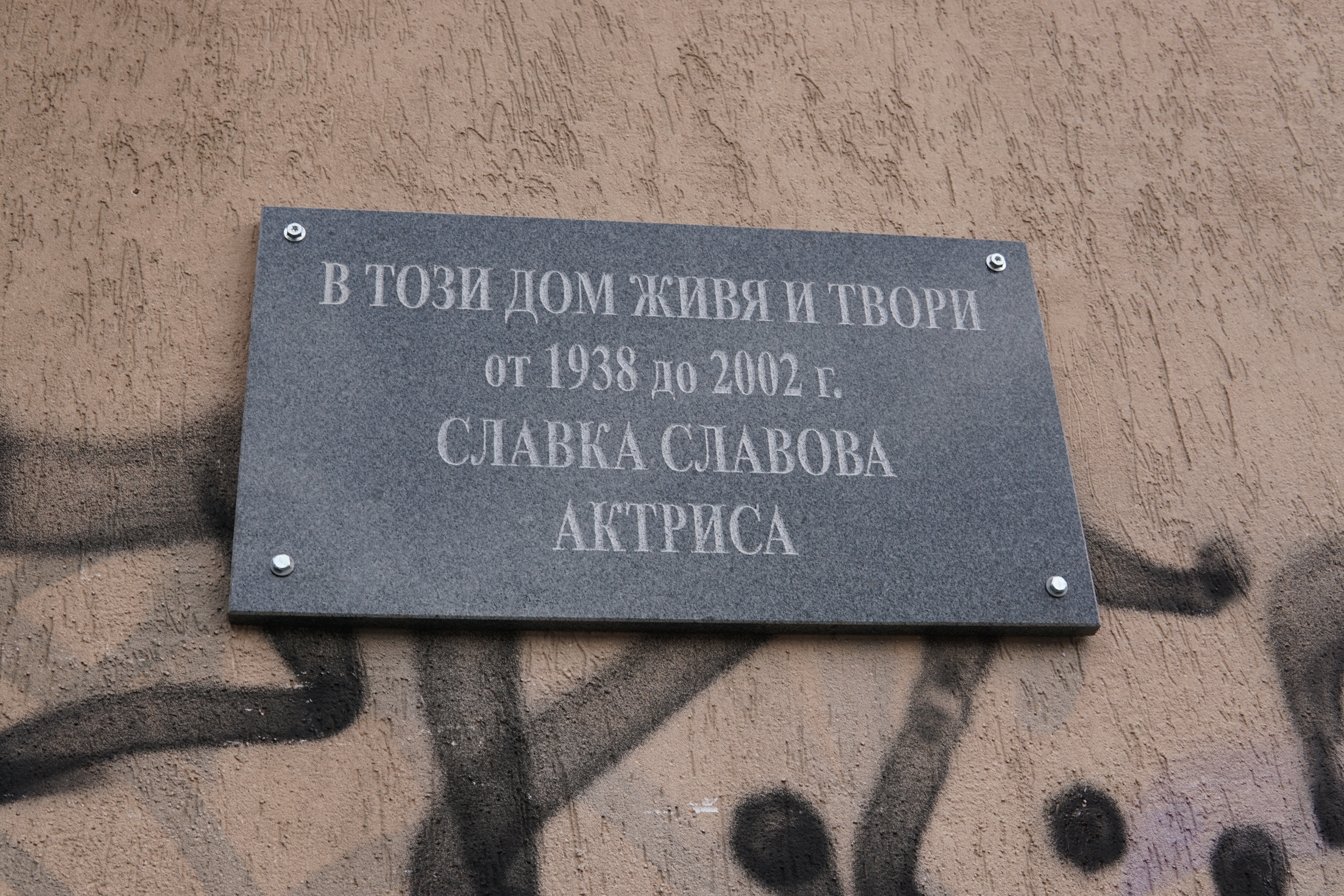 Възпоменателният знак е поставен на фасадата на кооперацията, в която е живяла Славка Славова, близо до Орлов мост. Инициативата е на нейната внучка Карина Караньотова.