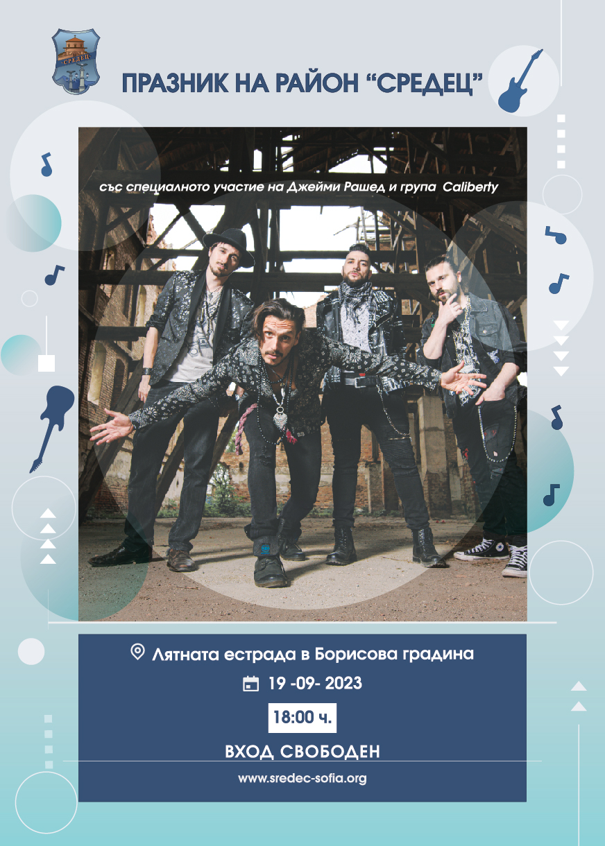 На 19 септември от 18:00 ч. на Лятната естрада в "Борисовата градина" ще се проведе празничен концерт със специалното участие на Джейми Рашед и рок групата Caliberty.
