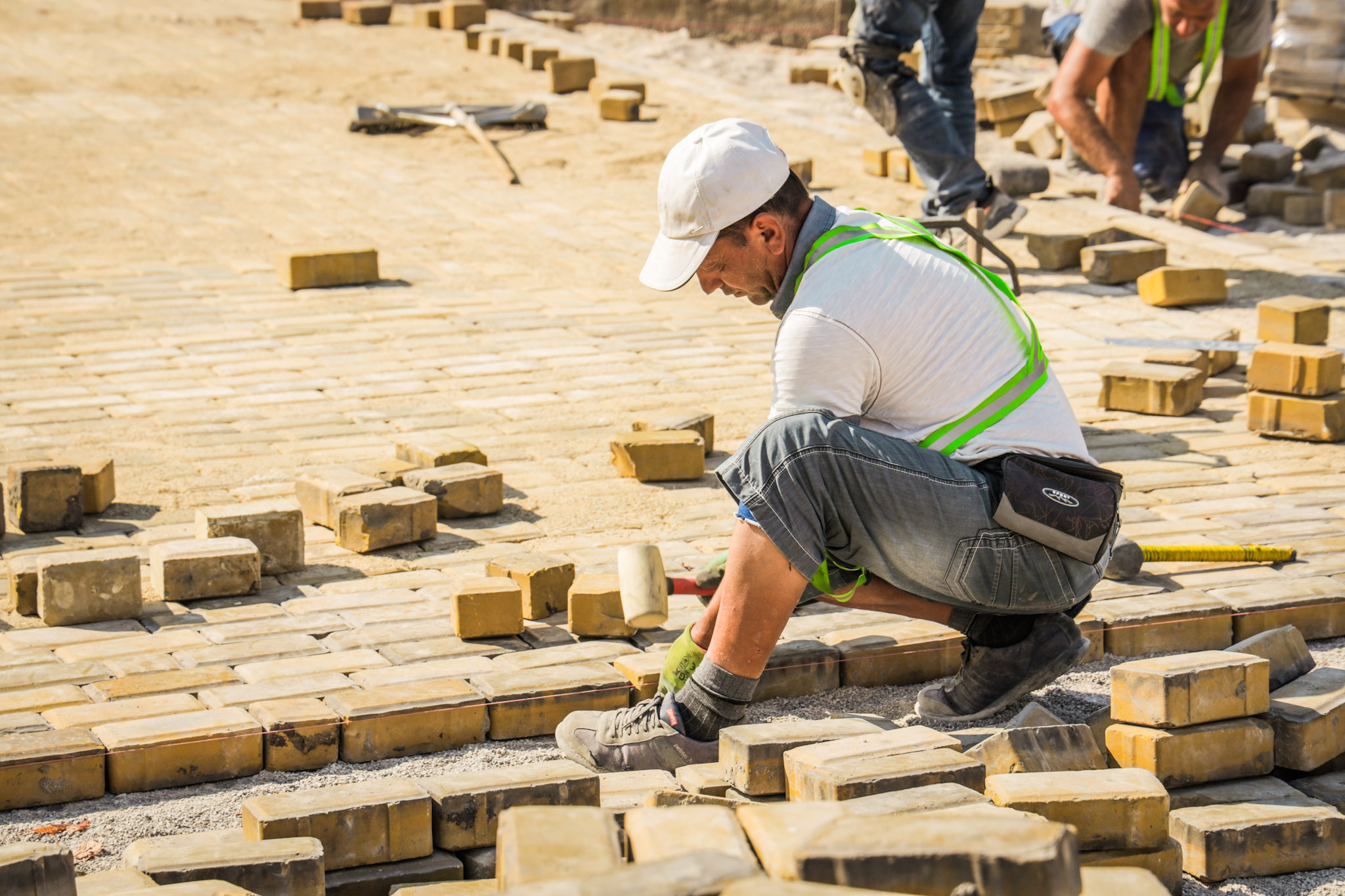 "В момента се извършва фугиране, уплътнява се с малки валяци пренаредения участък и се полива с вода. Изпълнява се пренареждане на паважната настилка.