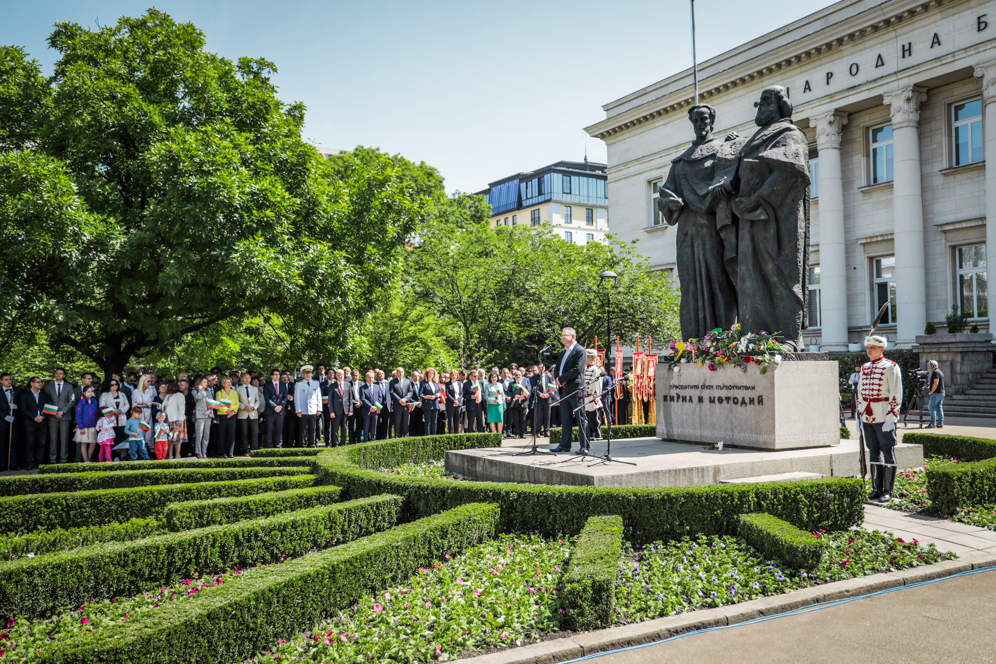 Преди години бях на посещение в Аушвиц, където има голяма карта на Европа, на която със стрелки от всички столици е отбелязано колко души са изпратени към концлагера и газовите камери. От София, разбира се, няма такава стрелка, но когато попитахме нашия гид, младо момиче, дали знае защо, тя, която от години работи там, само вдигна рамене и отвърна: „Ами сигурно сте нямали евреи“. Това, което е сигурно, за съжаление, е, че сме забравили истински стойностните и достойни неща, с които можем да се гордеем. И разбира се – славянската писменост. Ще си позволя тук да цитирам един мой много любим писател Стефан Цвайг: „Две открития на човешкия ум са първоосновата на всяко движение на Земята: движението в пространството е станало възможно благодарение на откриването на кръглото, въртящо се около своята ос колело; духовното движение – благодарение на откриването на писмеността“. Това означава, че днешният празник със сигурност ни отрежда мястото сред малкото народи в света, които задвижват колелото на прогреса и духовността на цялото човечество.
