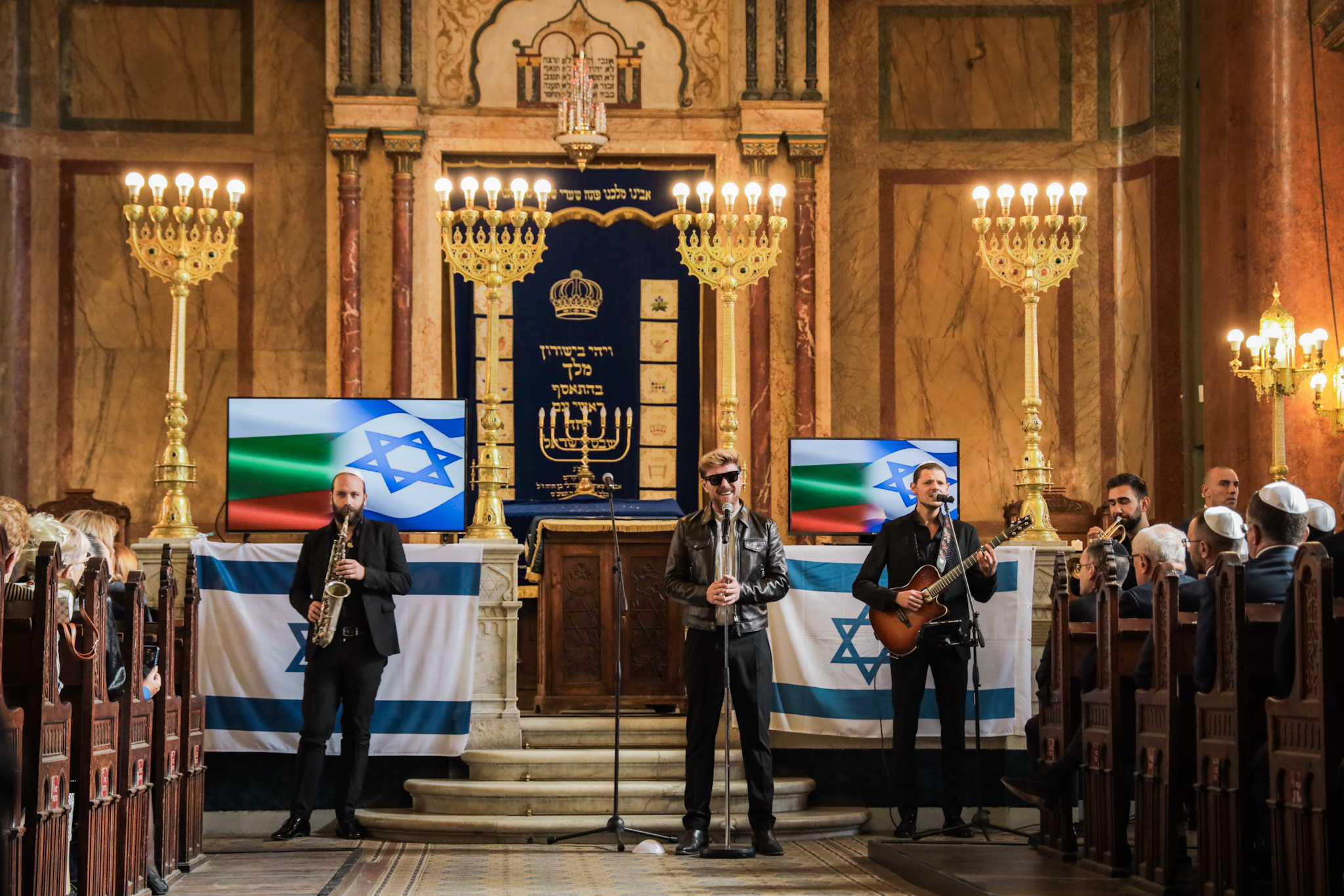 В централната Софийска синагога, пред светая светих, бяха отправени молитви за мир, а песента Shalom Aleichem изпълни Мирослав Костадинов – Миро.