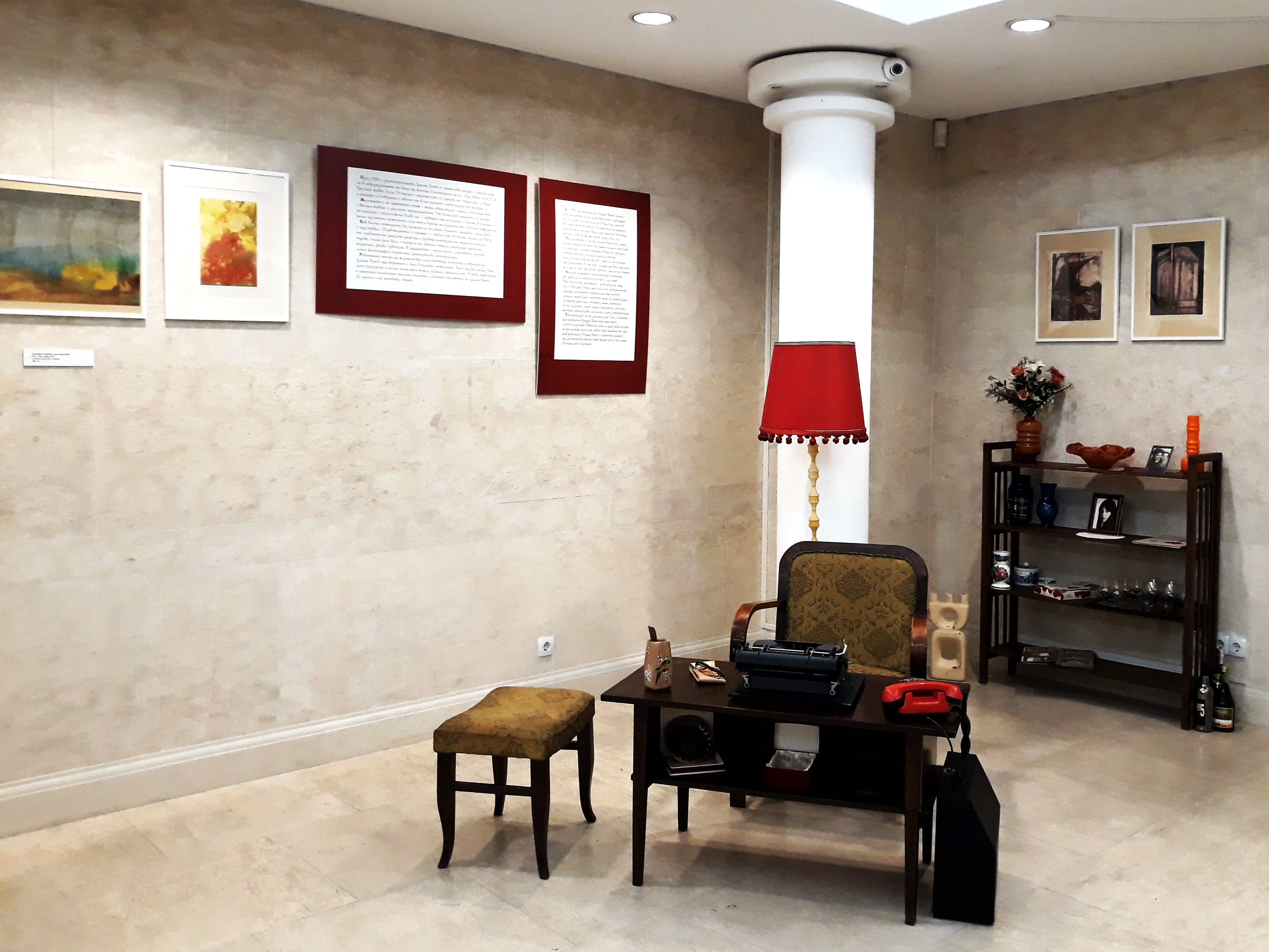 Изложени са части от обзавеждането, предмети на изкуството, декоративни елементи, облекло и аксесоари от личния гардероб. Те, подобно на реалната обстановка в дома, съжителстват с пишещата машина на Драган Тенев и изписаните през годините на нея страници.