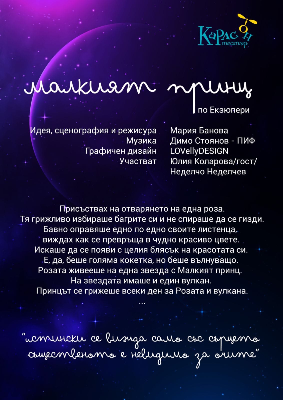 „Малкият принц“ – куклен спектакъл на Театър „Карлсон” за деца над 4 г.