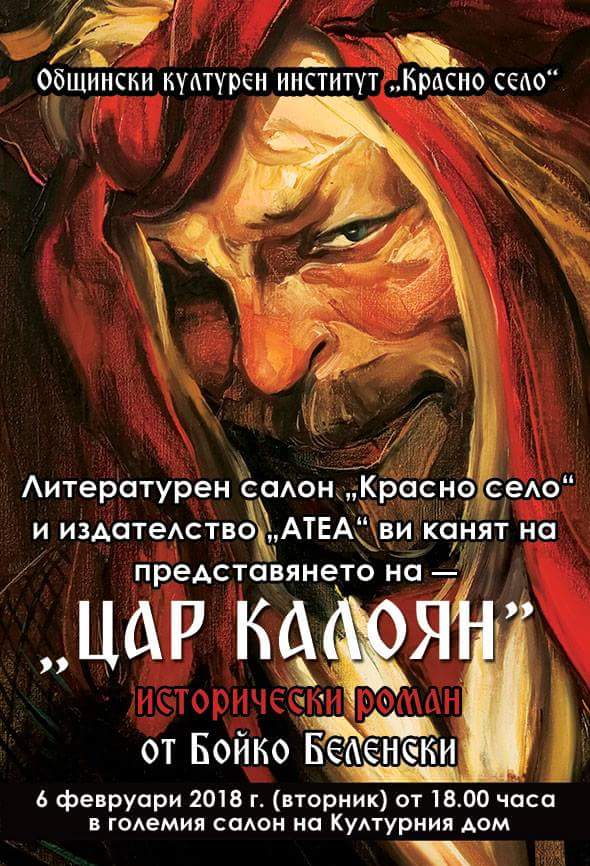 Писателят Бойко Беленски ще представи своята нова историческа книга "Цар Калоян" от 18 часа на 6 февруари в литературния салон на ОКИ "Красно село".