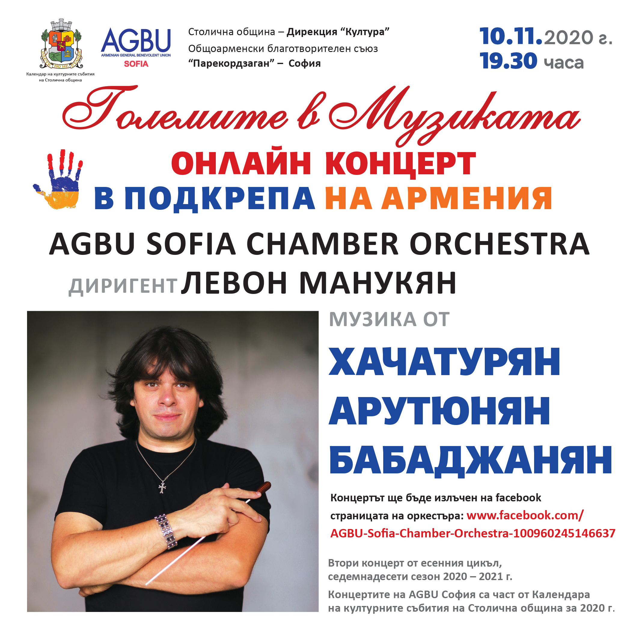 Общоарменски благотворителен съюз „Парекордзаган” – София организира втори концерт от есенния цикъл за 2020 – 2021 г. на AGBU Sofia Chamber Orchestra